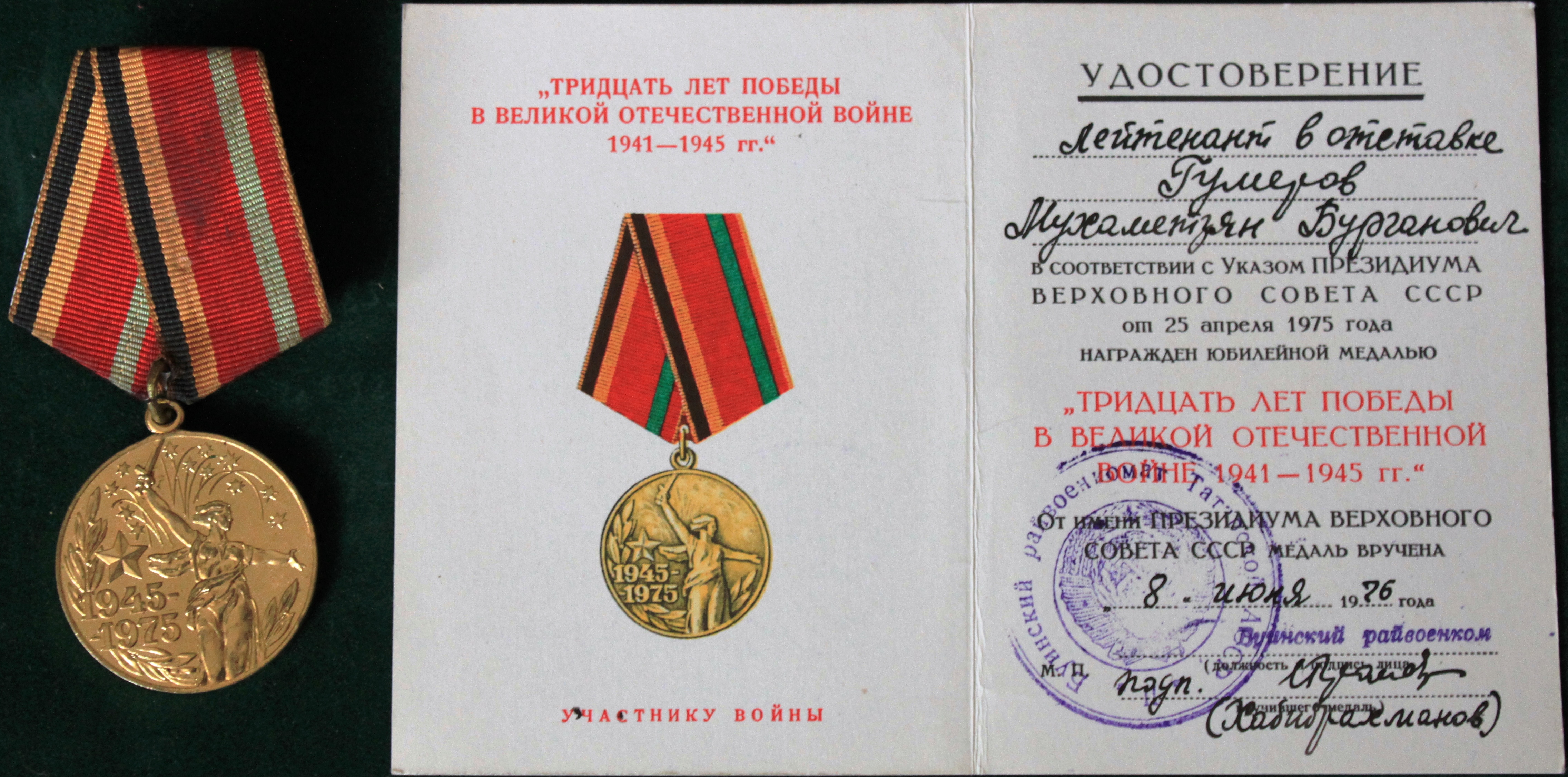 медаль «30 лет Победы Великой Отечественной войне 1941-1945 гг.»;