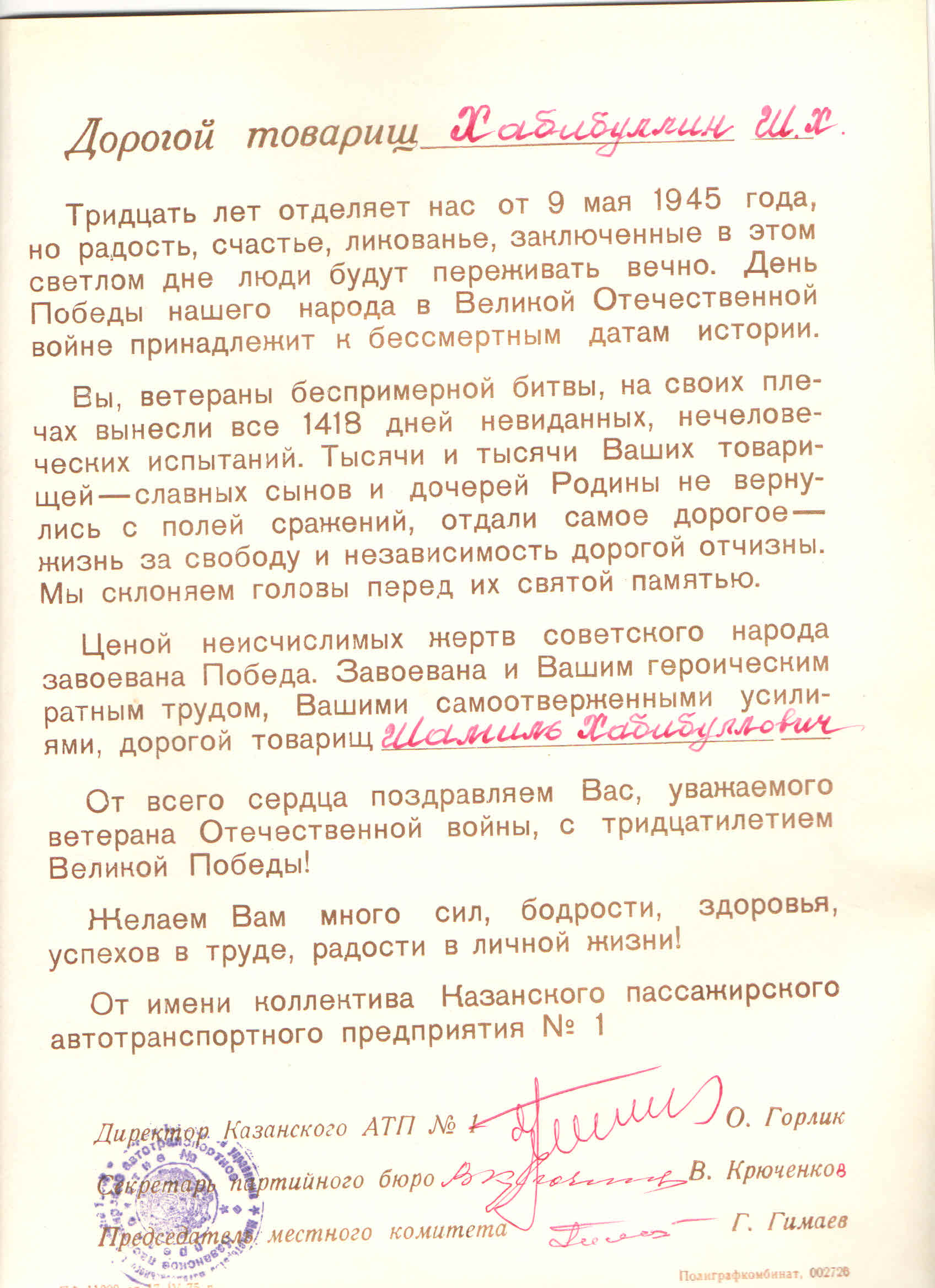 Хабибуллович Шамиль Хабибуллович, родился в деревне Большой Битаман Дубъязовском районе ТАССР 15 января 1926 году. Служил в Советской армии с 1943 года. 17 августа 1944 году получил пулевое ранение левого бедра. После войны продолжил службу в г. Рыльск Курской области младшим сержантом технической службы в 51173 войсковой части . 1949 году был награжден от Комитета по делам физической культуры и спорта при Совете Министров СССР значком «Готов к труду и обороне СССР». 1950 году вернулся с армии и начал работать в Казанской автотранспортной конторе, в это же время он женился на Хабибуллиной Диляре Нагимовне и родили они 3 детей. В 1986 году получил медаль «Ветеран труда». Так он в 1 автотранспортном предприятии проработал водителем 35 лет и был награжден знаком 1 степени «За работу без арий». Умер 06 марта 1986 году в Казани от рака желудка. Похоронен в деревне Битаман Дубьязовского р-на РТ.