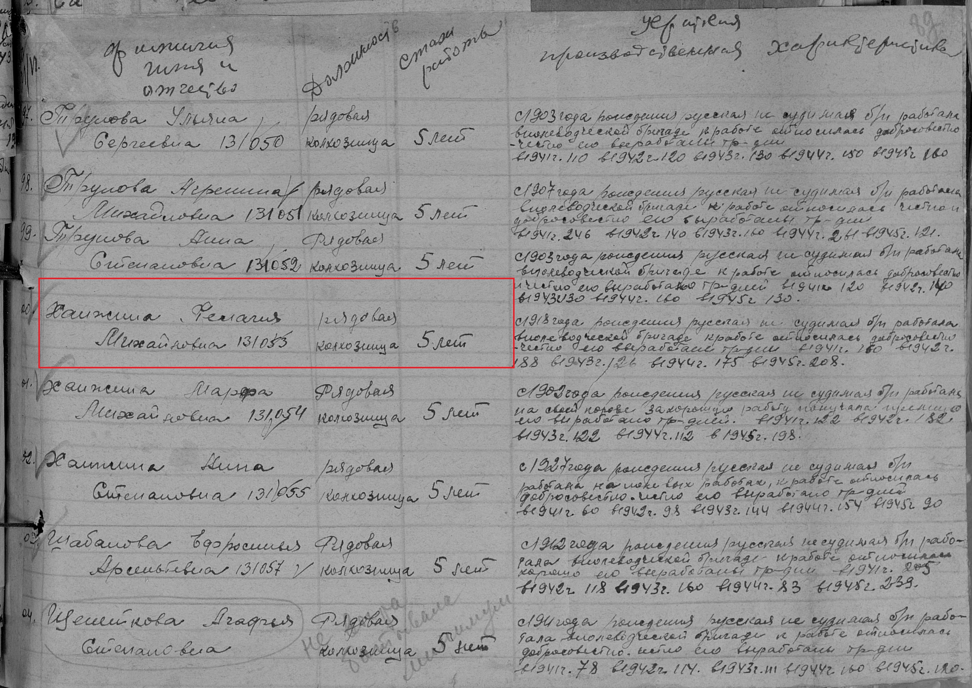ХАНЖИНА ПЕЛАГЕЯ МИХАЙЛОВНА