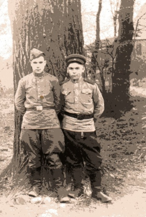 Мой прадед, Хасанов Рахимзян Салимзянович (на фото слева), родился 15 сентября 1923 года в селе Тимяшево Письмянского района Татарской АССР. Добровольцем ушел на фронт 1 марта 1942 года, ему было 19 лет. Сначала прадед воевал на Украине в истребительно - противотанковом дивизионе 281, телефонистом-связистом, освобождая села и города от фашистов, дошел до Берлина. Ему пришлось лежать в госпитале, было ранение в левую руку в декабре 1942 года.