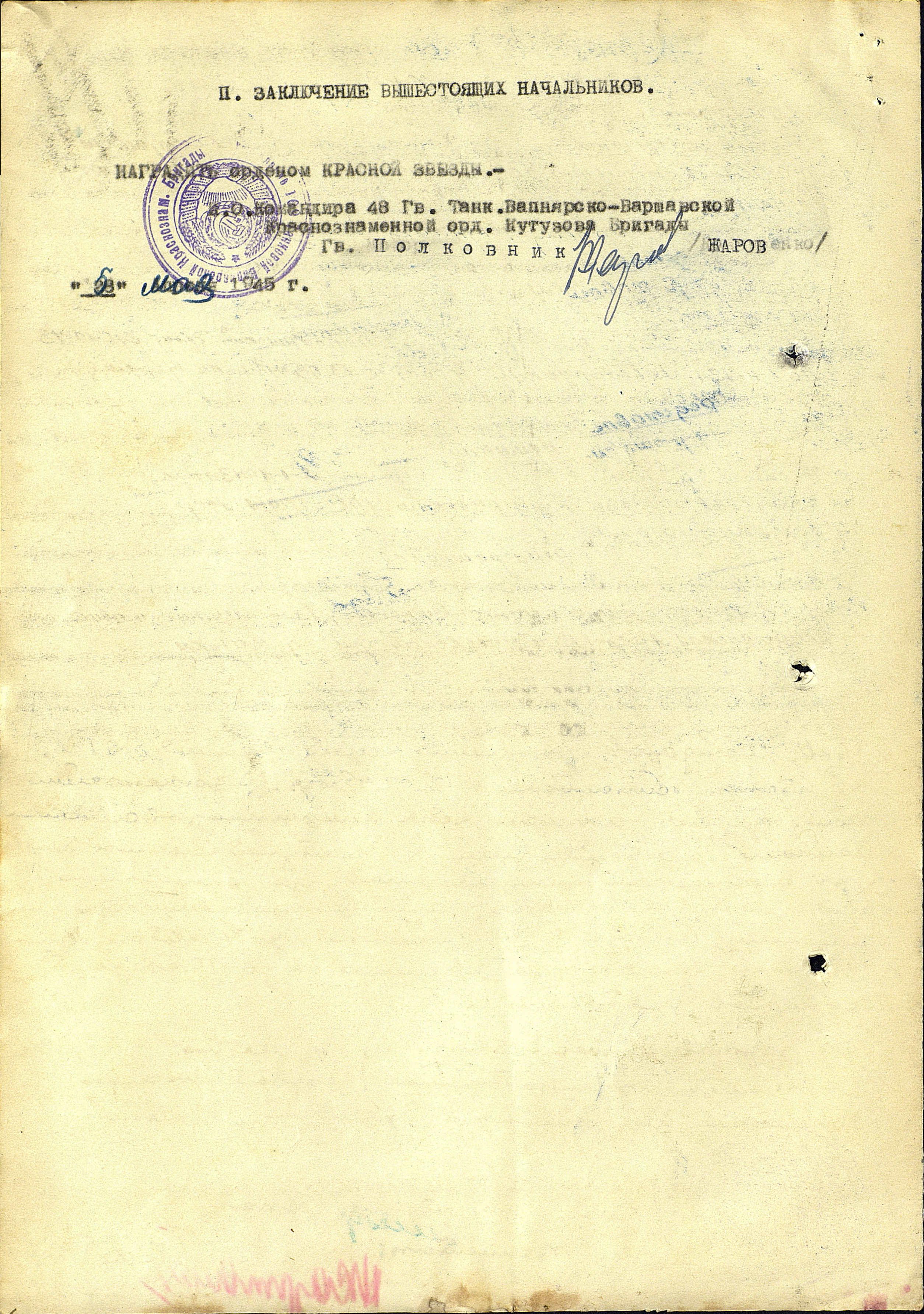 Награждён орденом Красной Звезды(1945г.), медалями «За победу над Германией в Великой Отечественной войне 1941–1945г.г.» и другими медалями.