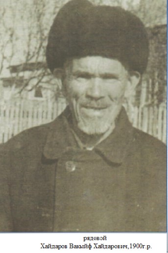 Хайдаров Вакыйф Хайдарович родился в 1900 году в деревне Верхнее Алькеево Спасского уезда Казанской губернии (ныне Алькеевского р-на РТ). Участник Великой Отечественной войны. Призван Алькеевским РВК ТАССР. Умер в 1980 году.