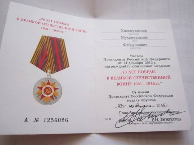 В нашем районе осталось тридцать три ветерана Великой Отечественной войны. Среди них и наш герой Мухаметхамис Файзуллович. Когда началось Великая Отечественная война ему было 15 лет. Он как все дети военного периода начал работать. Мухаметхамис Файзуллович работал и в колхозе, и окопы капал.