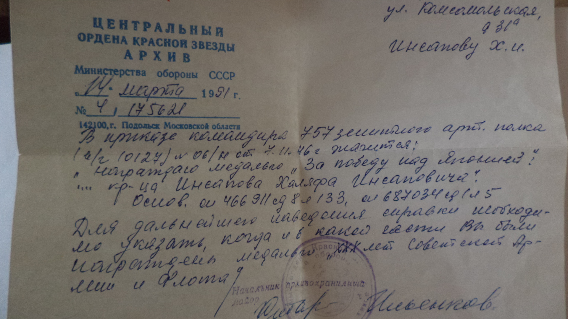 Инсафутдинов Хальфутдин Инсафутдинович 21.06.1926 г.р., участник войны, инвалид 2 группы от общего заболевания, проживает по адресу: г.Азнакаево, ул.Строителей 18-23.