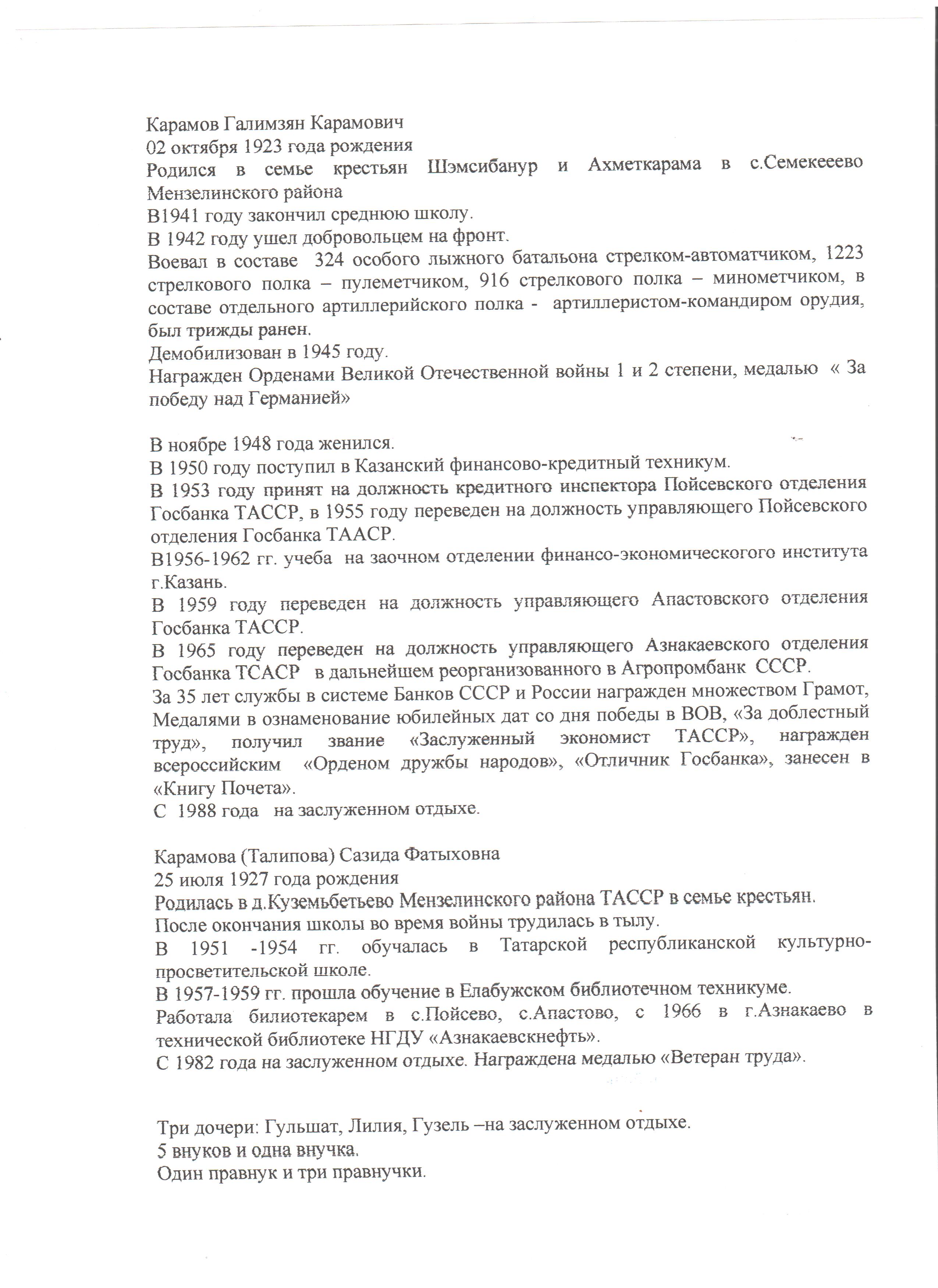 КАРАМОВ ГАЛИМЗЯН КАРАМОВИЧ Район: АзнакаевскийПрикреплённые изображения: Опубликовано 17 апреля, 2015 - 09:38 пользователем Нигьматзянова А...