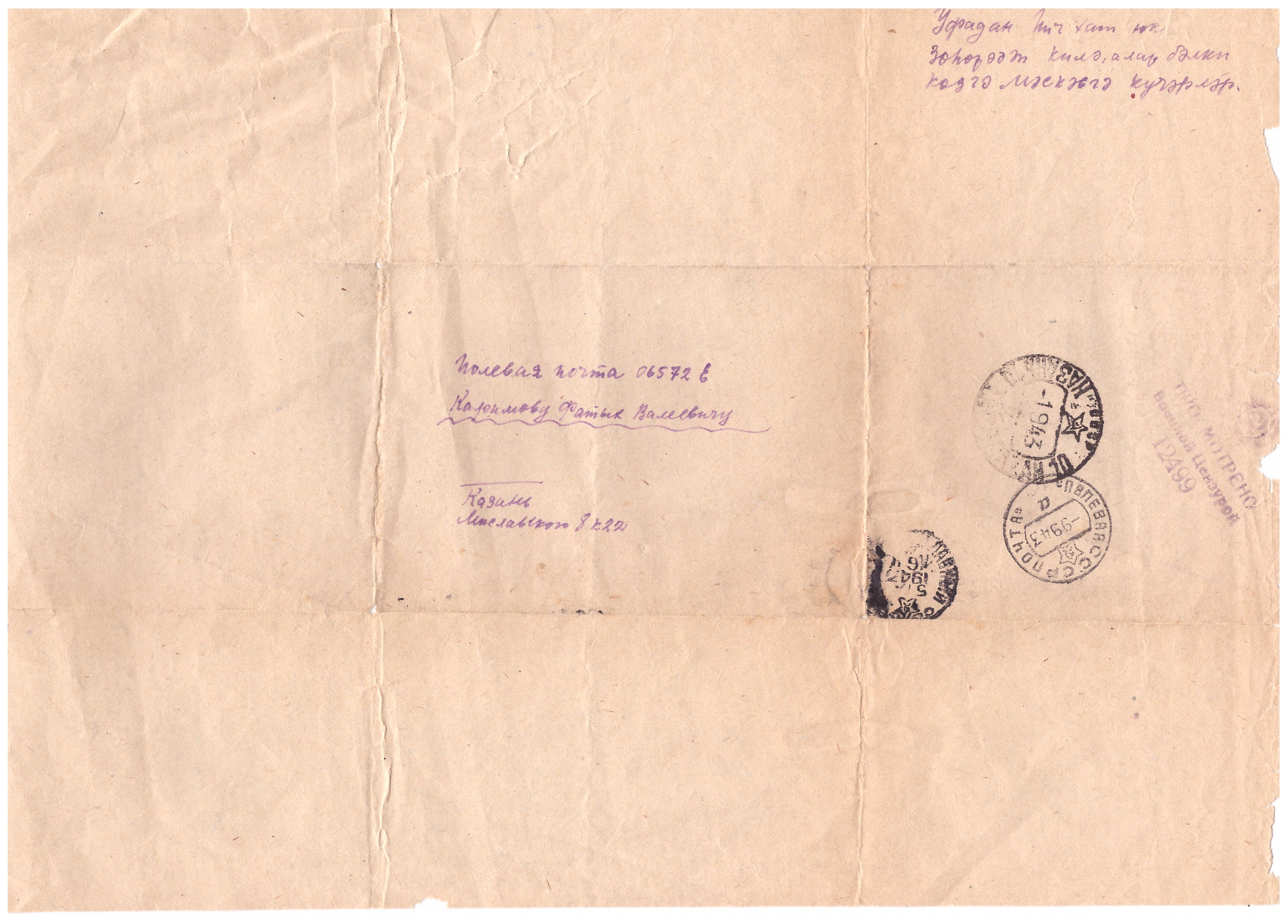 Уже потом, через какое-то время, после его отъезда, она сфотографировалась с нами – девочками, это было в 1944 году. Это письмо мама послала папе на фронт. Получив письмо с этой фотографией, он уже с ней не расставался.