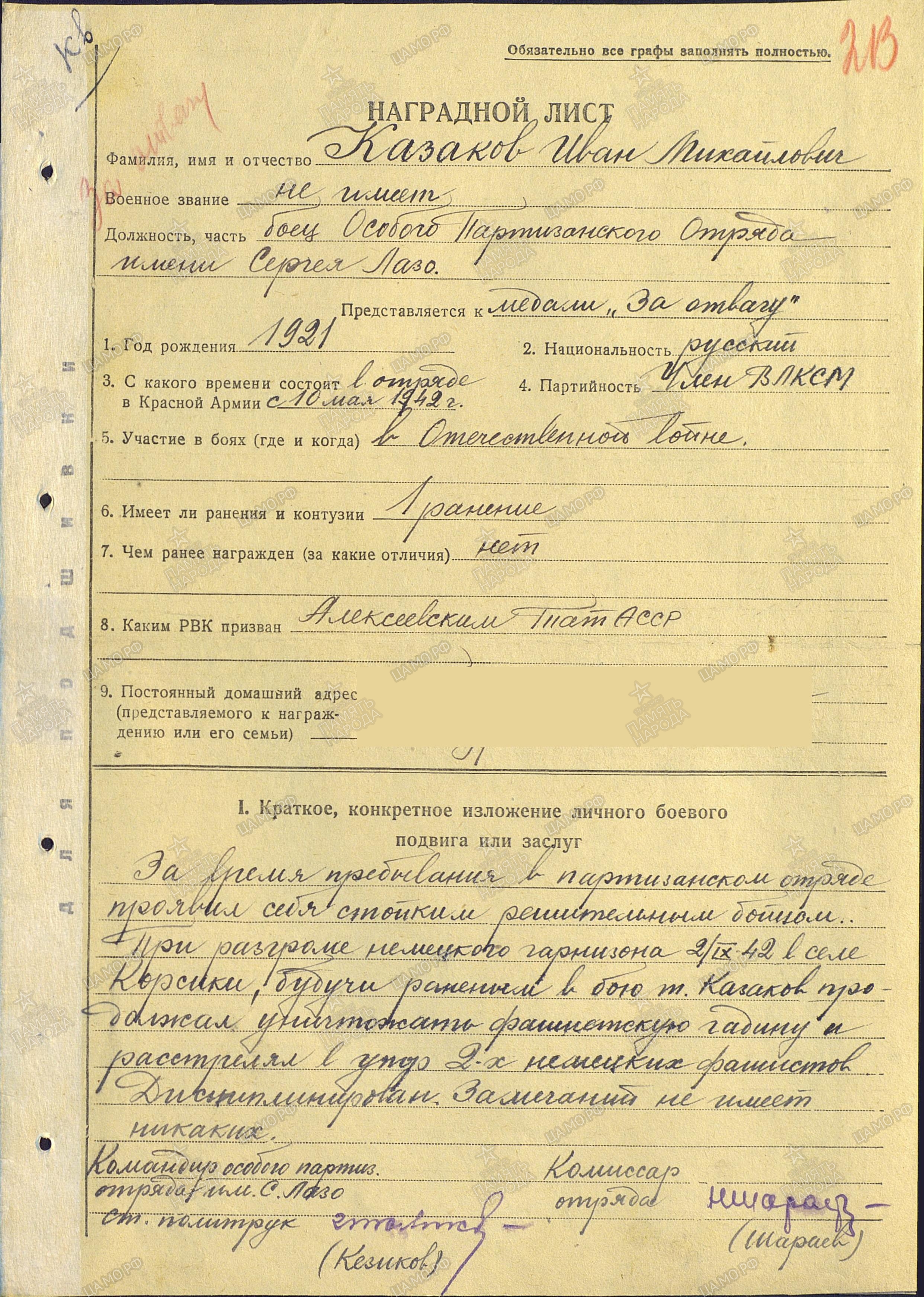 КАЗАКОВ ИВАН МИХАЙЛОВИЧ 1921