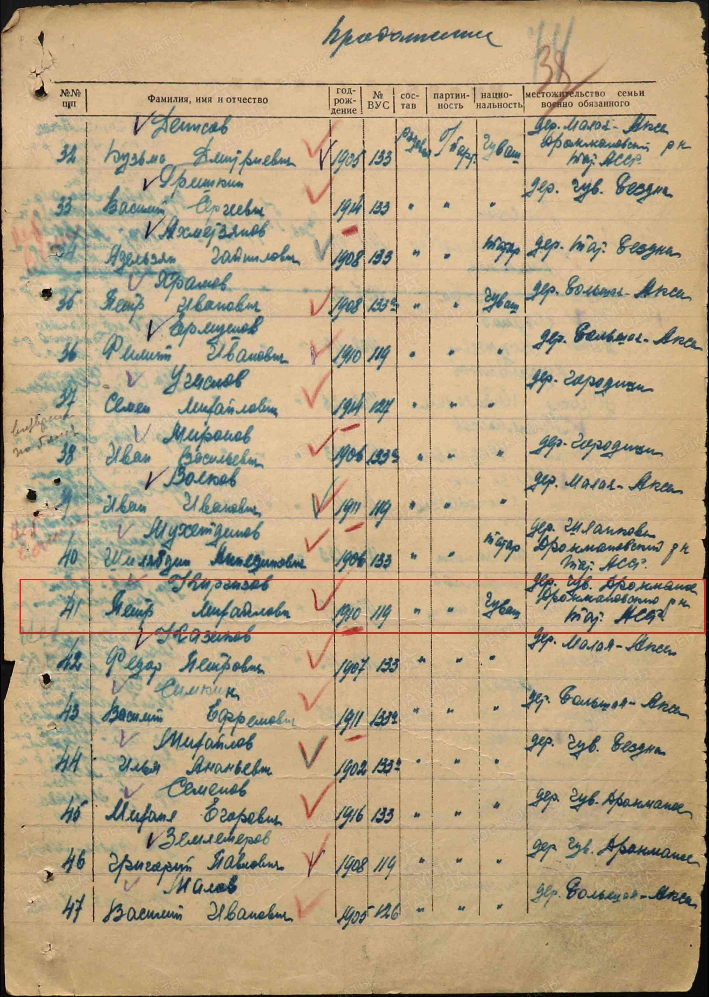 Киргизов Петр Михайлович родился в деревне Хайбулдино.Дрожжановского района. После начало войны был Дрожжановским РВК мобилизован на войну 7 декабря 1941 года.