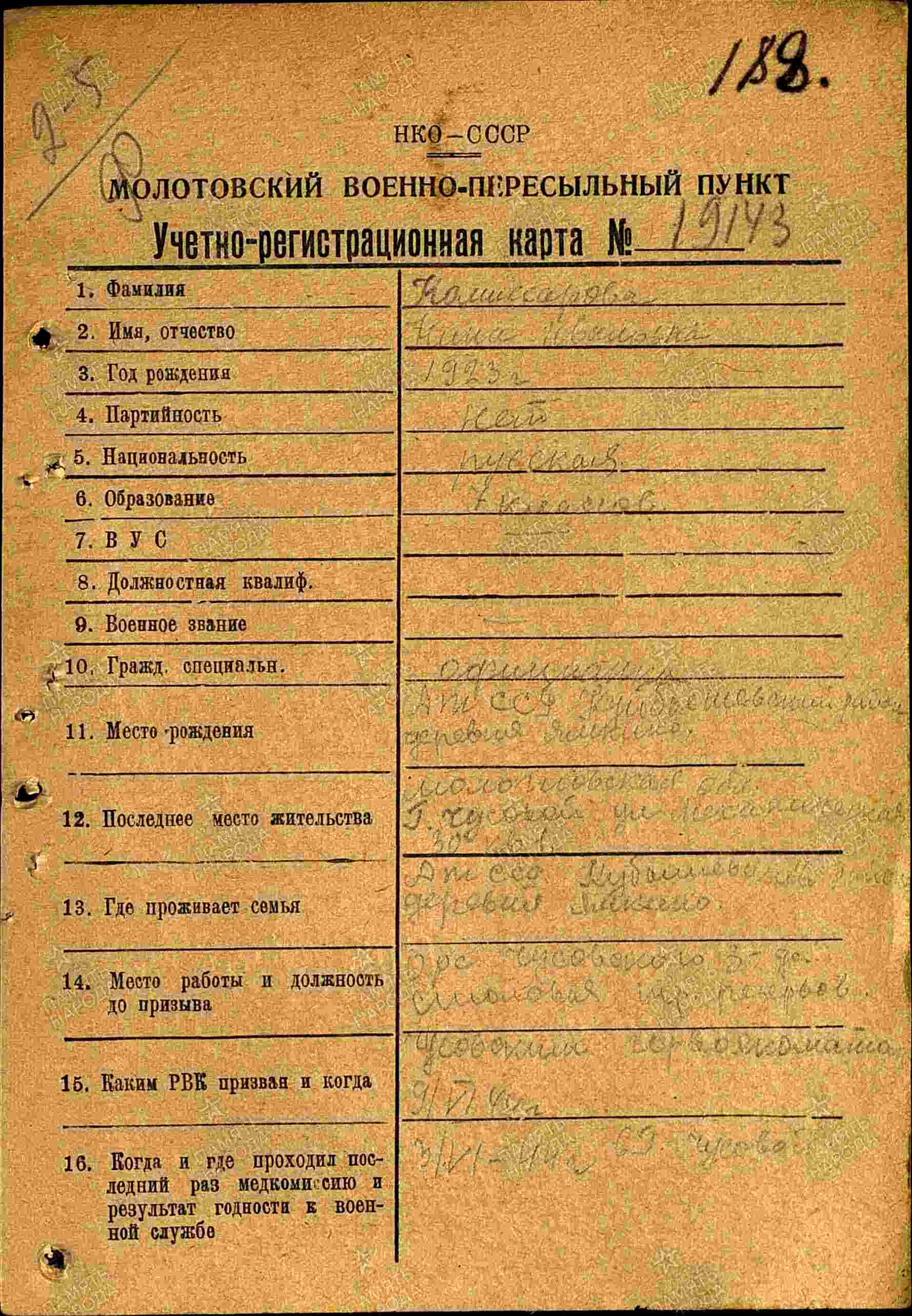 КИСТИКОВА (КОМИССАРОВА) Нина Ивановна, 1923, д. Ямкино. Мобилизована Чусовским РВК Молотовской обл. (Пермский край). Награждена орденом Отечественной войны 2 ст. (1985).