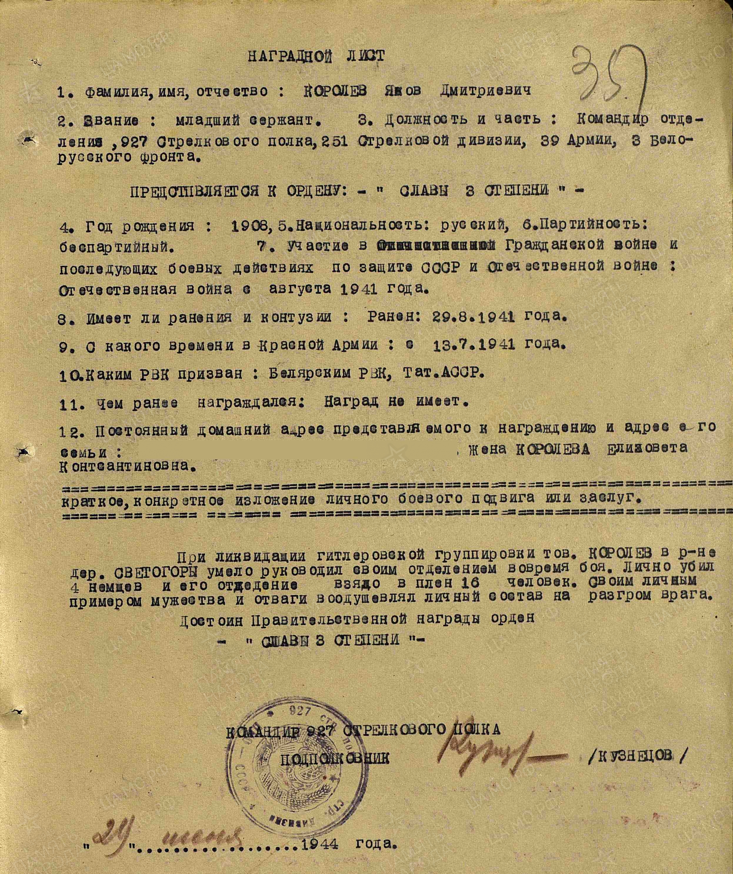 КОРОЛЁВ ЯКОВ ДМИТРИЕВИЧ