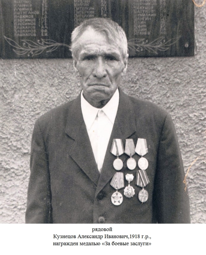 Кузнецов Александр Иванович родился в 1918 году в селе Старые Хурада Спасского уезда Казанской губернии (ныне Алькеевского района РТ). Фронтовик. Участник Великой Отечественной войны. Призван Алькеевским РВК ТАССР. В армии с 1940 по 1945г. Рядовой. Минометчик. Сражался около г. Ворошиловограда. Ранен. Был в плену. Награжден медалями «За боевые заслуги», «50 лет Вооруженным силам СССР», нагрудным знаком «25 лет Победы в Великой Отечественной войне».