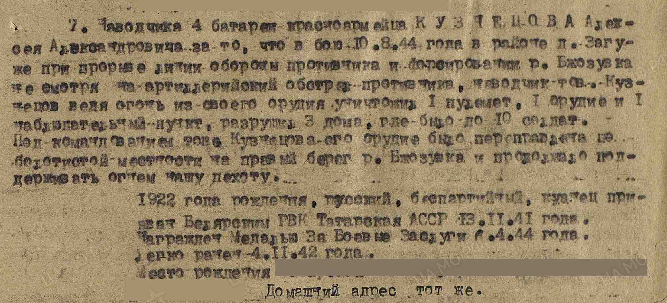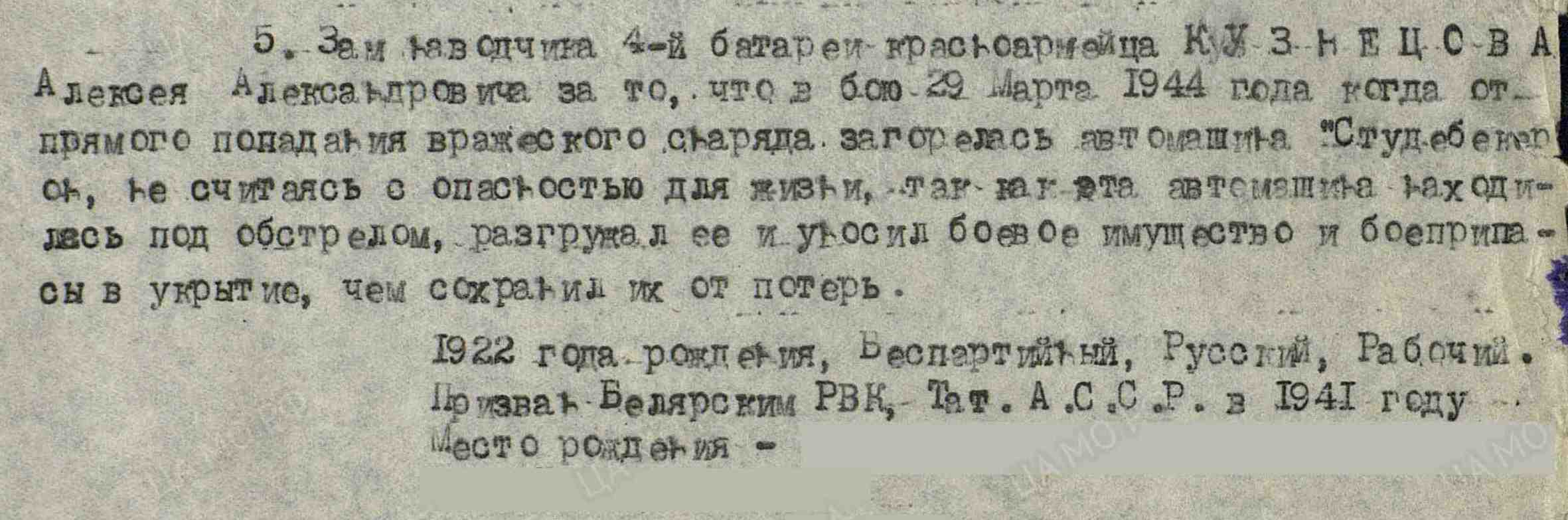 КУЗНЕЦОВ АЛЕКСЕЙ АЛЕКСАНДРОВИЧ 1922