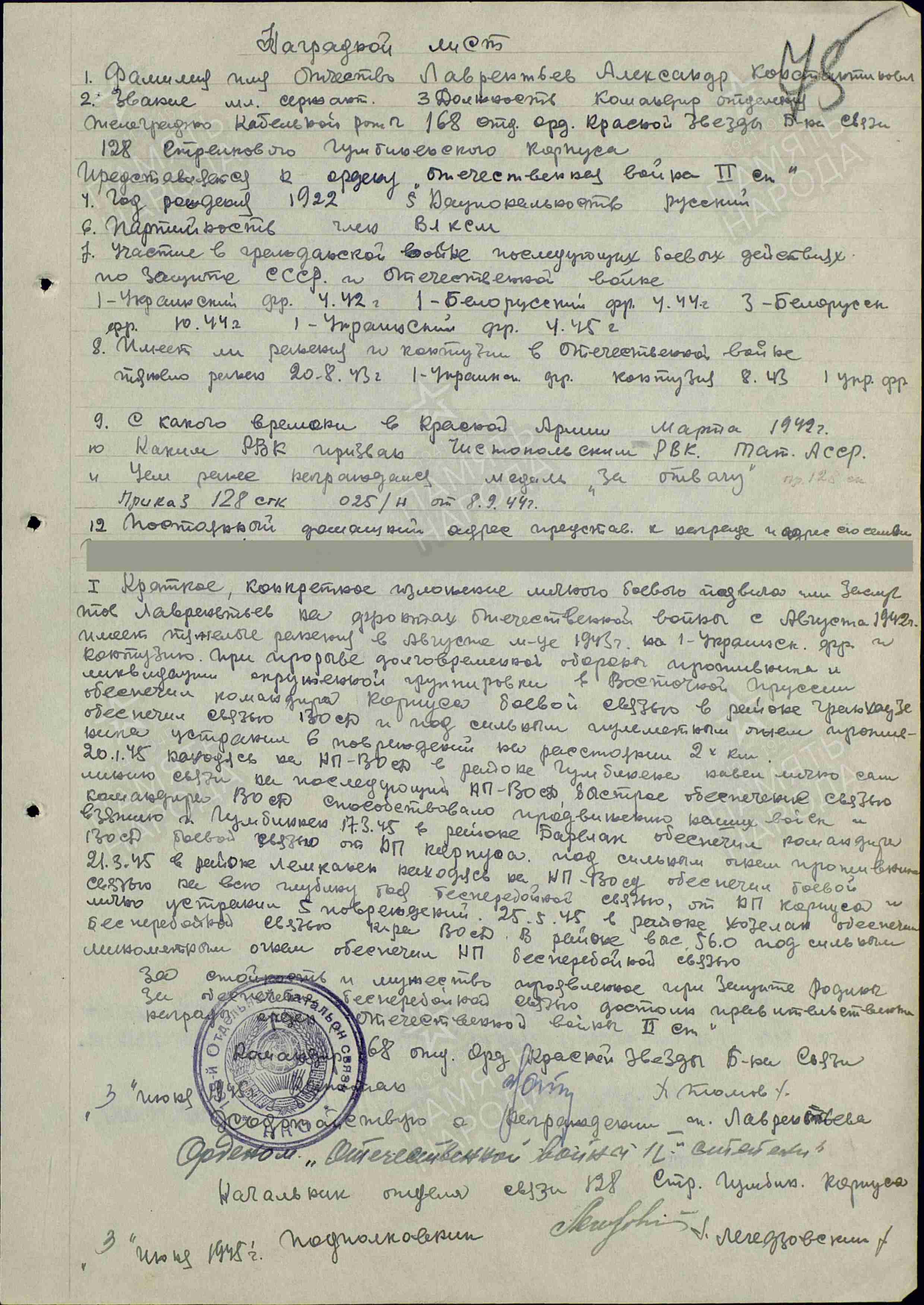 Сайт «Память народа»// https://pamyat-naroda.ru/heroes/podvig-chelovek_nagrazhdenie39406287/