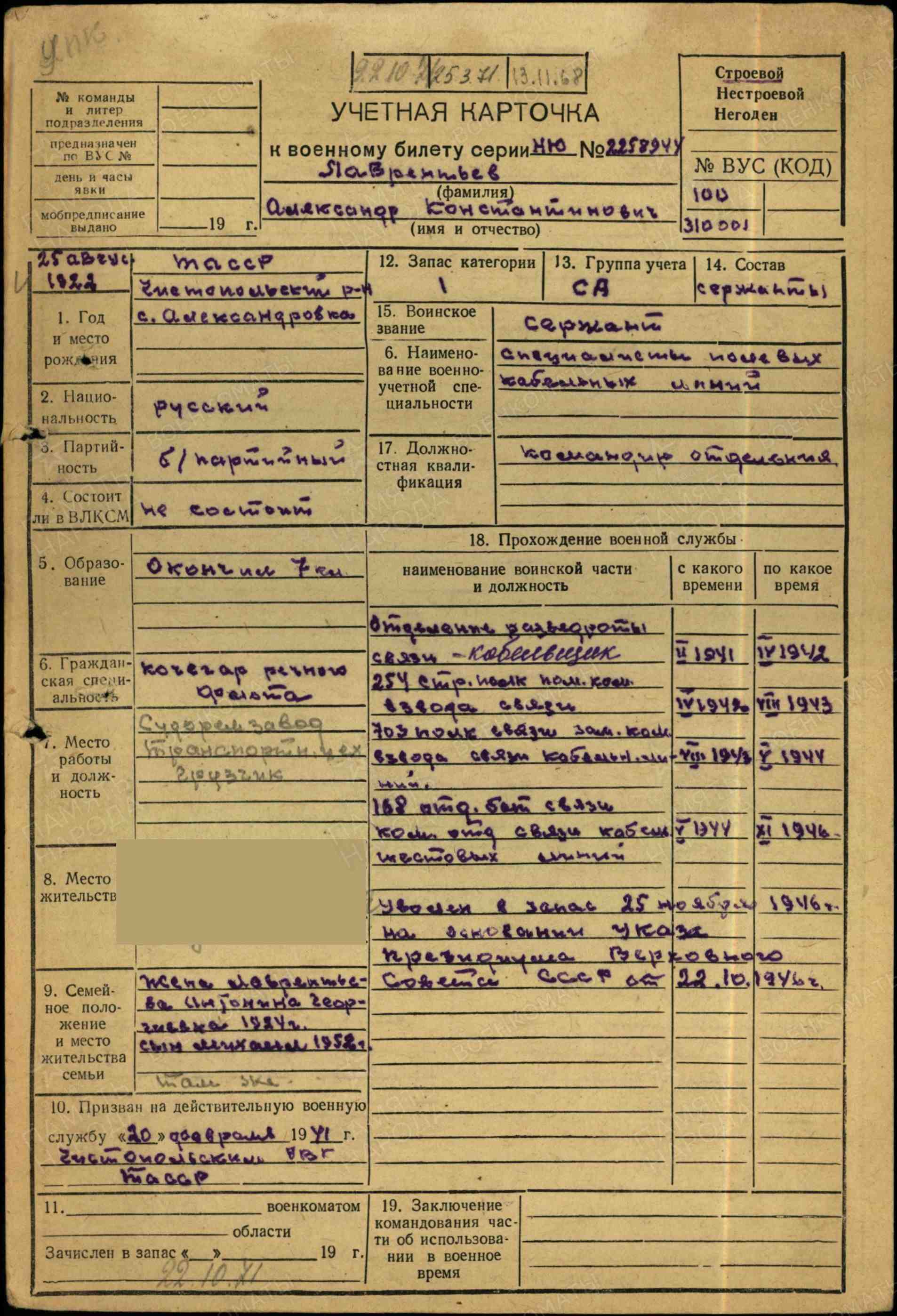 25 ноября 1946 года уволен в запас.