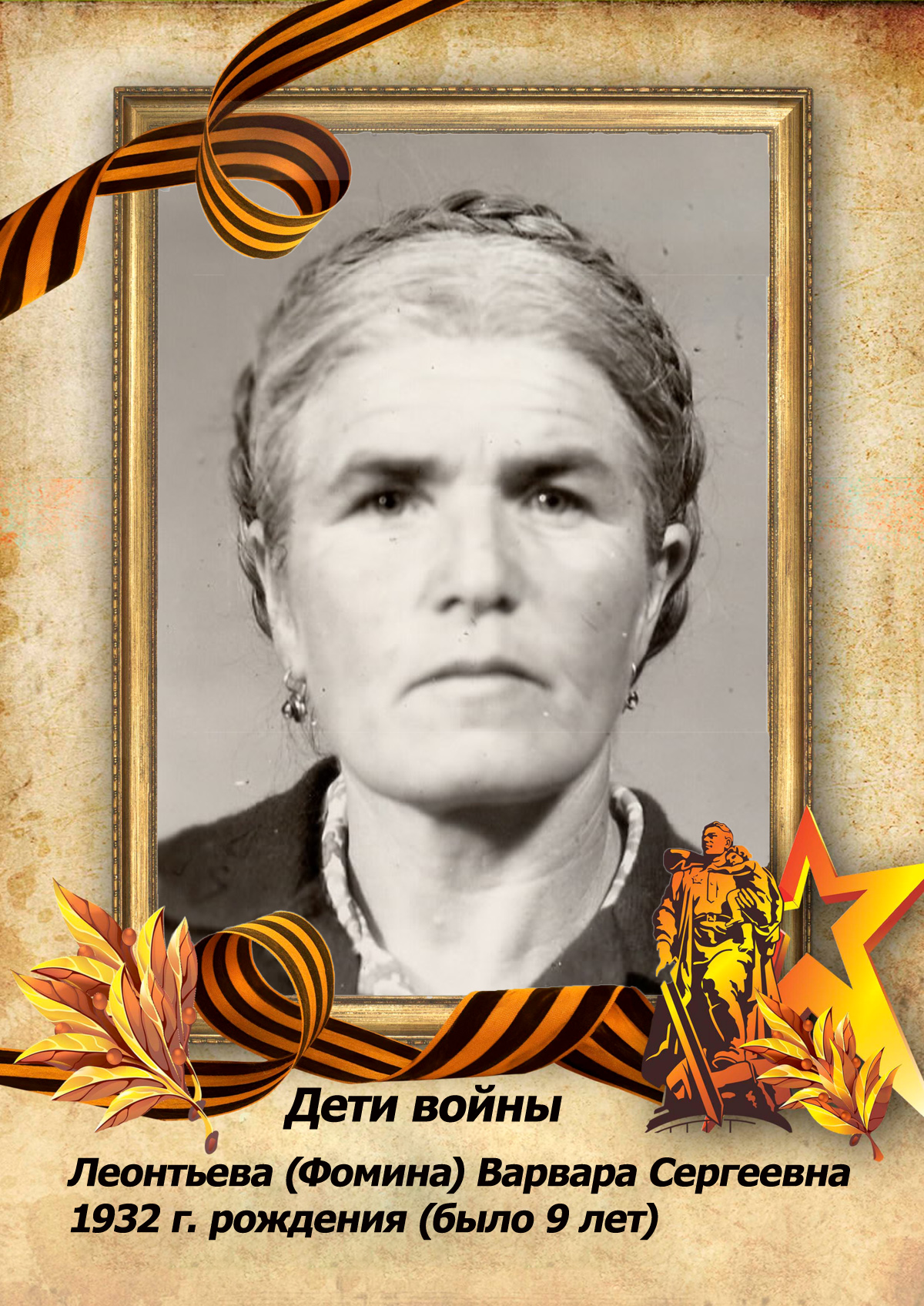 ЛЕОНТЬЕВА (ФОМИНА) ВАРВАРА СЕРГЕЕВНА Дети войны Опубликовано 5 мая, 2020 - 18:58 пользователем Наталья Сарыкова