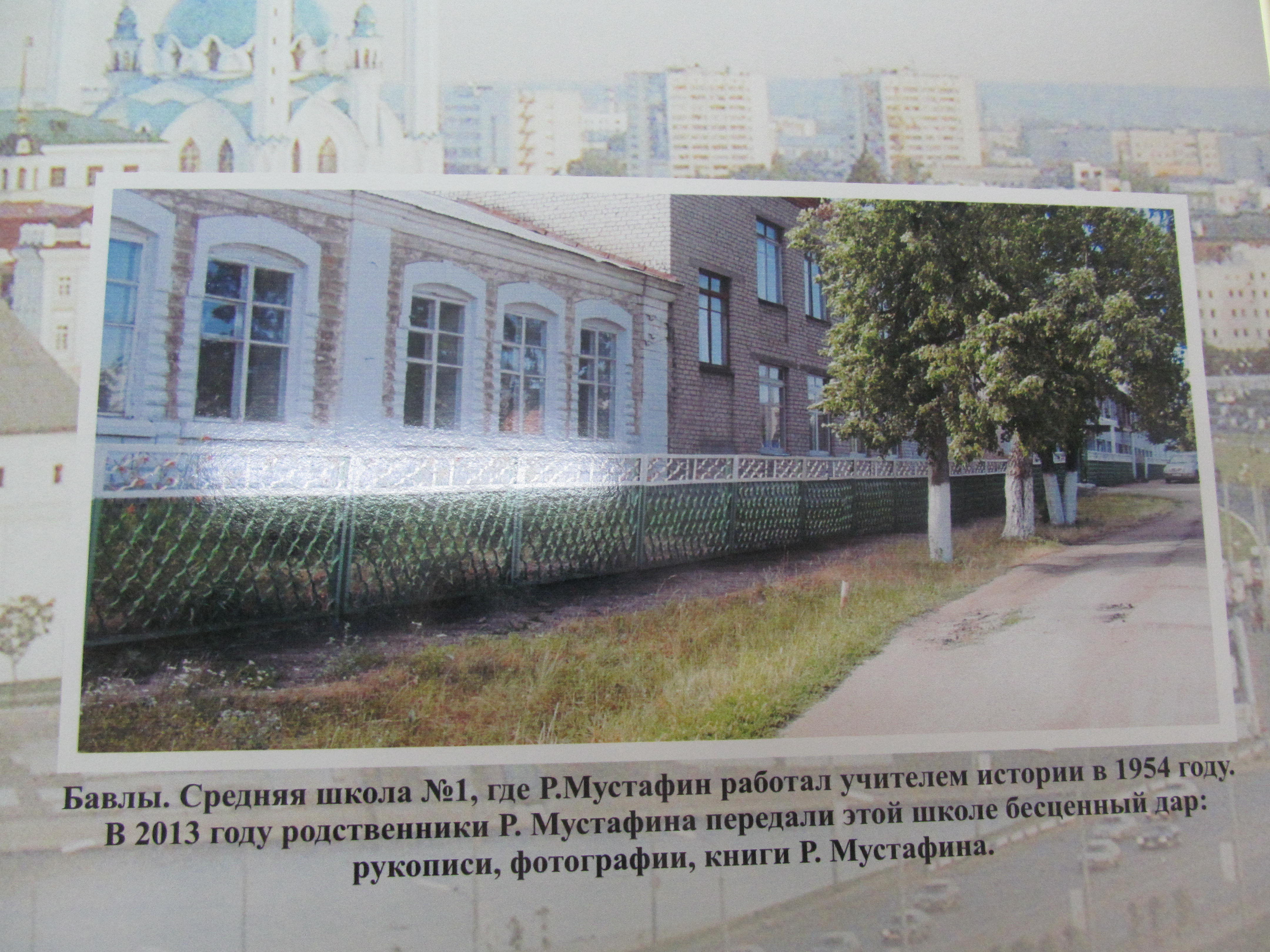 В августе 2015 года, к Дню города, в Бавлинской школе №1 открыли музей Рафаэля Мустафина. Рафаэль Ахметович Мустафин родился в селе Бавлы ТАССР 3 мая 1931 года в семье землемера Ахмета Мустафина. Отец, окончив Военную академию РККА им. Фрунзе, стал кадровым офицером. Начало Великой Отечественной воины семья Мустафиных встретила на границе с Финляндией в 3 км от государственной границы. Глава семьи 22 июня ушел на фронт, а семья, испытывая нужду и лишения, под бомбежками добиралась в глубокий тыл, на родину отца. Десятилетний Рафаэль на всю жизнь запомнил обстрел эшелона. Своего отца больше не видел: он погиб под Ленинградом 26 сентября 1942 гола. Мама Рафаэля Мустафина Фатыма Шигаповна без мужа воспитала двоих детей и дала им высшее образование. В тылу Рафаэль жил в Шарлыкском районе Оренбургской области в деревне Ново-Мусино. В 1949 году он окончил Шарлыкскую среднюю школу на золотую медаль и поступил в Казанский государственный университет. В 1954 году, успешно окончив историко - филологический факультет КГУ, приезжает в Бавлы и работает учителем истории в Бавлинской средней школе №1, секретарем Бавлинского райкома комсомола, сотрудником районной газеты. Основные произведения Рафаэля Ахметовича написаны в Казани, но первые публикации сделаны на Бавлинской земле в районной газете «Слава труду». В 1954-1960 гг. Р.А. Мустафин был собственным корреспондентом московской газеты «Литература и жизнь» по Поволжью. В 1960-1963 гг. занимал должность главного редактора художественных программ Казанского телевидения. В 1966 году он стал кандидатом филологических наук и членом союза писателей СССР. С 1968 года по 1991 год Р.А. Мустафин преподавал на кафедре журналистики Казанского университета. С 1991 года Р.А. Мустафин работал главным редактором общественно-политического журнала «Татарстан». В 1973 году он был удостоен премии журнала «Казан утлары» и в 1974 году премии журнала «Дружба народов». Р. Мустафин в 1976 году был удостоен республиканской молодежной премии имени М. Джалиля. За заслуги в области литературы он награжден орденом «Знак почёта», ему присвоено звание «Заслуженный работник культуры Республики Татарстан», в 2005 году Петровская академия наук избрала его действительным членом Академии наук. Около 50 лет он вел работу по сбору материала о беспримерном жизненном и творческом подвиге поэта Мусы Джалиля. Р. Мустафиным написаны сотни статей и изданы около 40 книг.