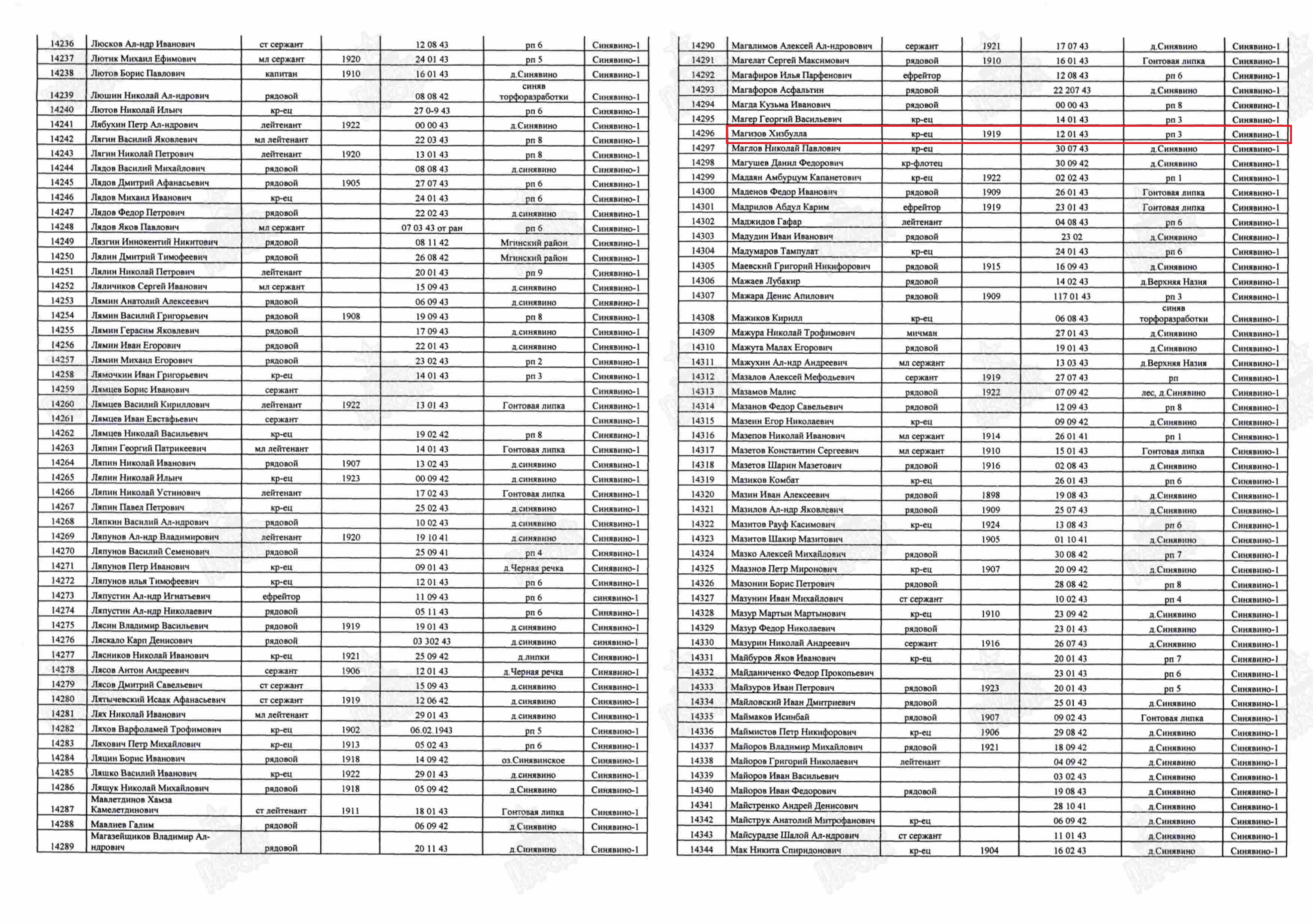 МАГИЗОВ ХИЗБУЛЛА родился в 1919 году в с.Верхнее Никиткино Казанской губернии Чистопольского уезда Ерыклинской волости (ныне с. Тубылгы-Тау Новошешминского района РТ). Мобилизован Новошешминским РВК,кр-ц,1238 сп,372 сд(163 сп,11 сд). Причина смерти: п 12.01.43 г. Область выбытия: Ленинградская обл.,Кировский р-н,Рабочий поселок 3(8) .