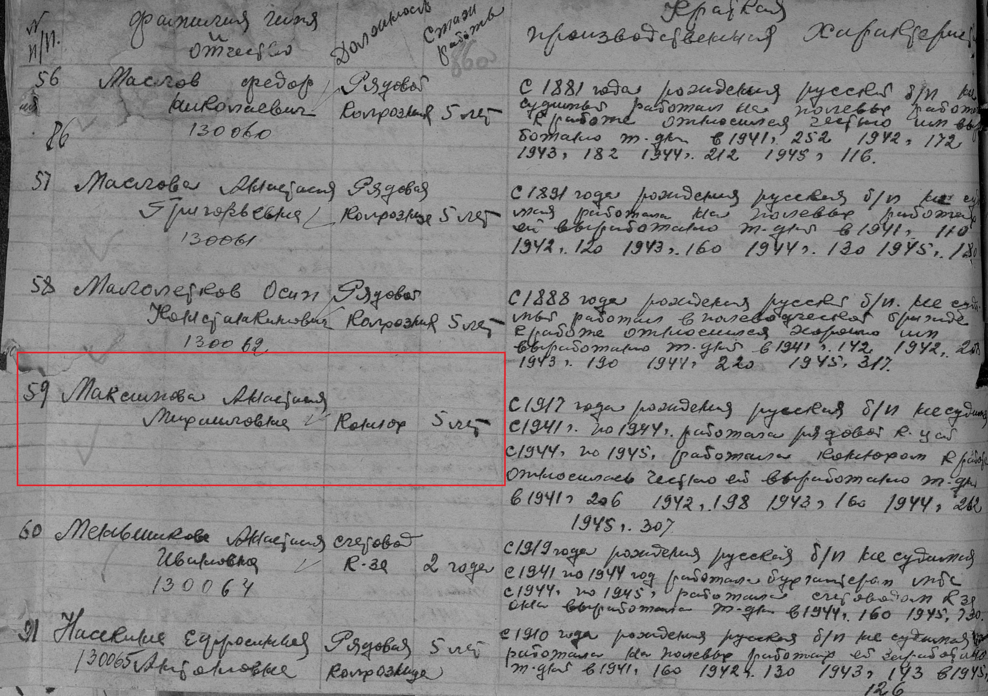 Максимова Анастасия Михайловна родилась в 1911 году в с.Сл.Черемуховая Казанской губернии Чистопольского уезда Новошешминской волости. В годы Великой Отечественной войны работала в колхозе "8-е Марта" колхозницей. Награждена медалью "За доблестный труд в Великой Отечественной войне 1941–1945 гг." (Акт от 28 апреля 1947г., фонд 3610, опись 2, дело 325, лист 86, № 130062).