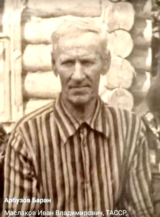 МАСЛАКОВ Иван Владимирович, 1901, д. Николаевский Баран. В 1920-1922 проходил срочную службу в РККА. Мобилизован Билярским РВК 26 авг. 1941. Красноармеец/ гв. красноармеец. В апр. 1942 через ВПП направлен в состав 22 гв. СД 53 А/ 11 А Северо-Западного фронта. В боях получил тяжёлое ранение и после лечения признан годным к нестроевой службе. В 1944, после переосвидетельствования, дважды проходил повторную мобилизацию. Награждён орденом Отечественной войны 1 ст. (1985).
