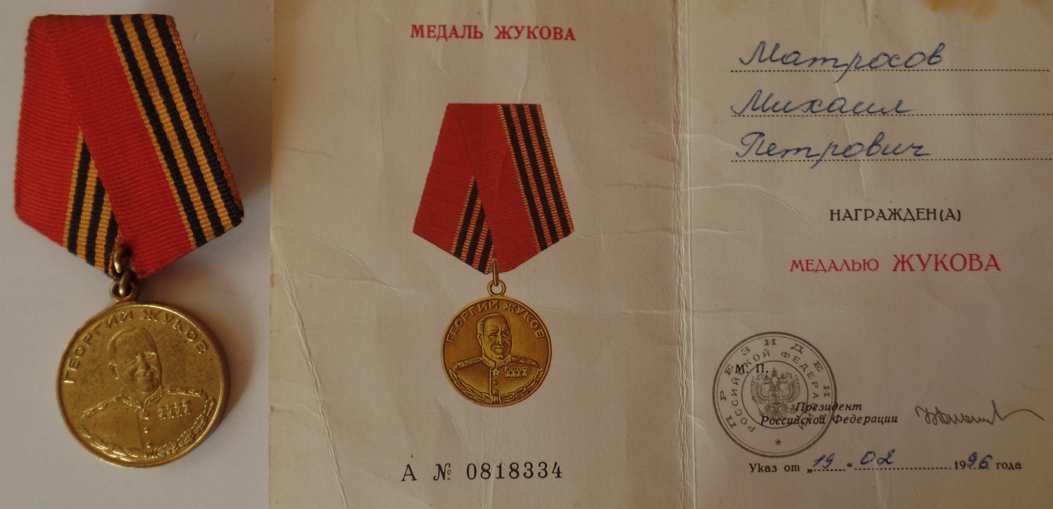 Шли ожесточенные бои, на Белорусской земле полегло много однополчан Михаила Петровича, в боях близ белорусского населенного пункта под артиллерийско-минометным огнем он с товарищем устранял порывы на линии, мина оборвалась прямо на них, его напарника подорвало прямо на куски. Он чудом остался жив, был ранен, контужен, два месяца находился в госпитале. Позже ему за четкость действий в напряженной обстановке и проявленную храбрость наградили второй медалью «За отвагу». После выписки из госпиталя рядового Матросова Михаила Петровича направили в противотанковый артиллерийский полк третьего Белорусского фронта связистом. Вскоре наши войска вступили на территорию Германии. Впереди предстояли бои на территории Восточной Пруссии, штурм Кенигсберга. Подступы к нему были окружены мощными оборонительными сооружениями. Бой шел за каждую улицу, каждый дом. Город горел. Рушились здания, сквозь завесу из дыма, огня не было видно белого света. Под непрерывным огнем держали связисты на передовом телефонную связь. За проявленную отвагу и мужество Михаил Петрович Матросов был удостоен медали «За взятие Кенигсберга», а также поощрен Благодарственным письмом от главнокомандующего 11 –ой Армии Баграмяна, командующим фронта был в то время был маршал Василевский.