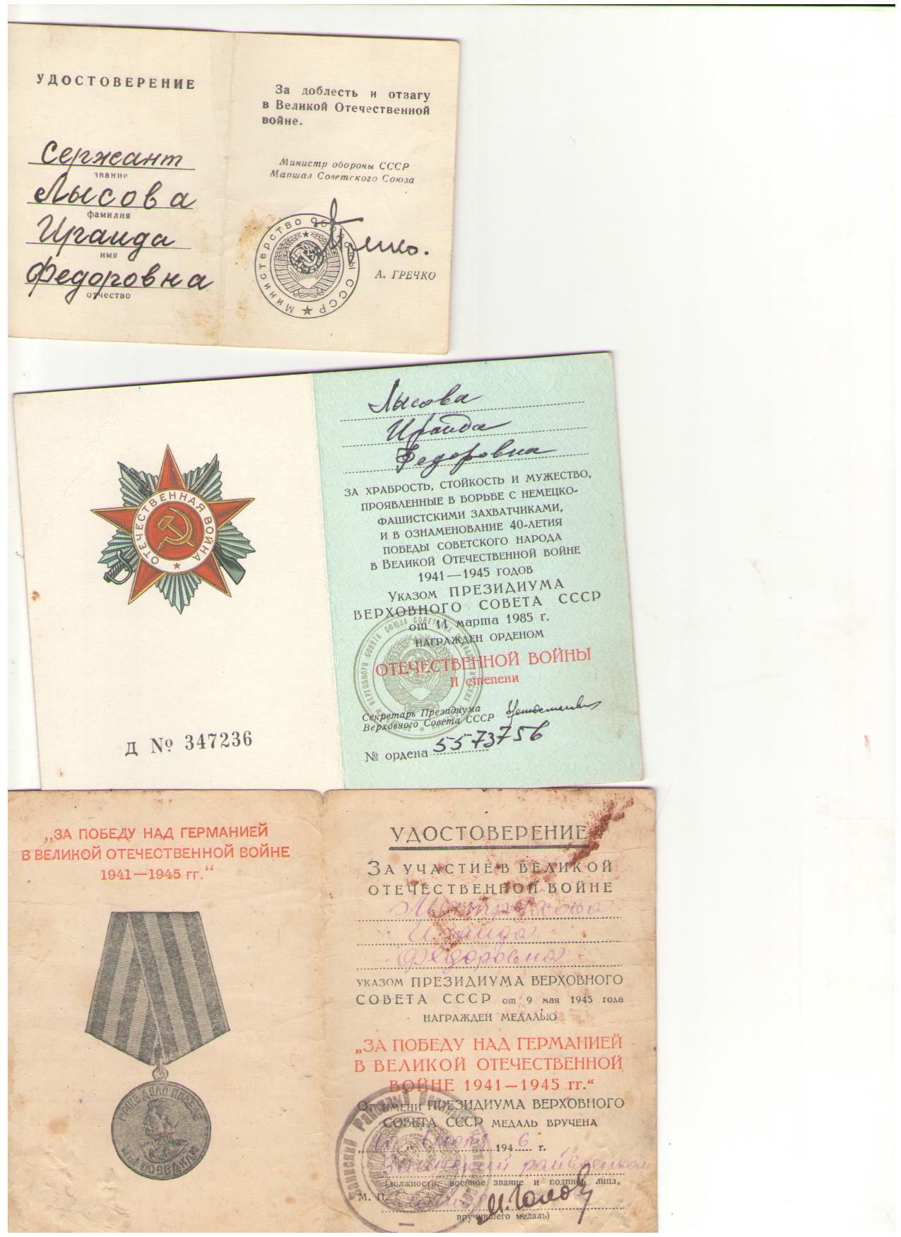 Ираида Федоровна награждена медалью "Партизан Отечественной войны", орденом "Отечественной войны II степени и множеством юбилейных медалей.