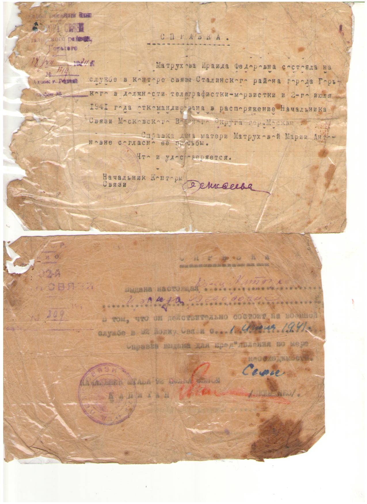В 1942 году 6 марта Ираиду Федоровну вызвали в Бобровск, там не было телеграфистки. В ночь с 6 на 7 марта она пердавала и принимала приказы Иосифа Сталина , за что уторм была награждена Сталинской Почетной грамотой. 22 сентября 1944 года вернулась домой. В послевоеннные годы работала заведующей союзпечати. в 1950 г вышла замуж и роодила пять детей, за что была удостоена материнской медали.