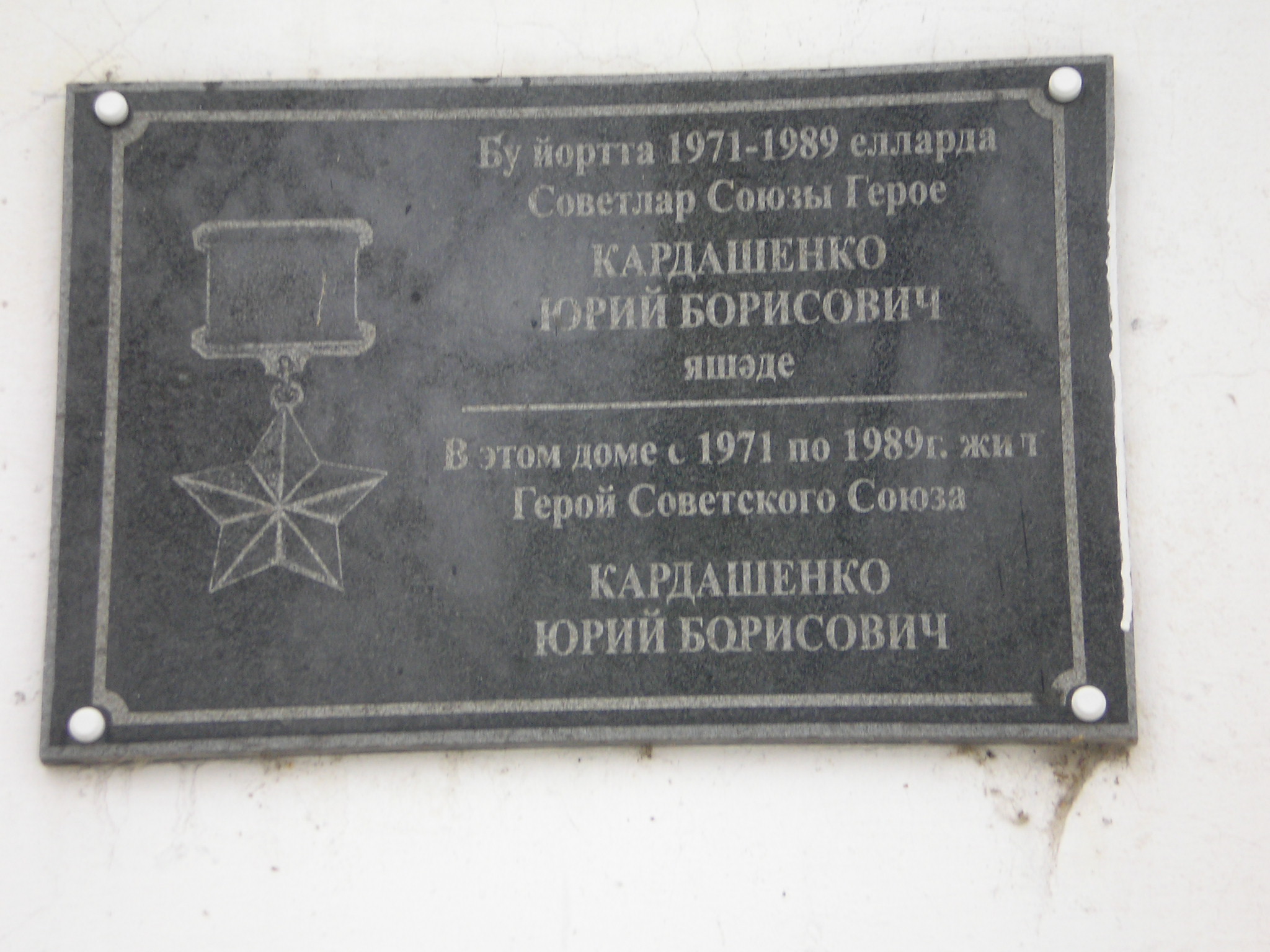МЕМОРИАЛЬНАЯ ДОСКА НА ДОМЕ, ГДЕ ЖИЛ ГЕРОЙ СОВЕТСКОГО СОЮЗА КАРДАШЕНКО Ю.Б.