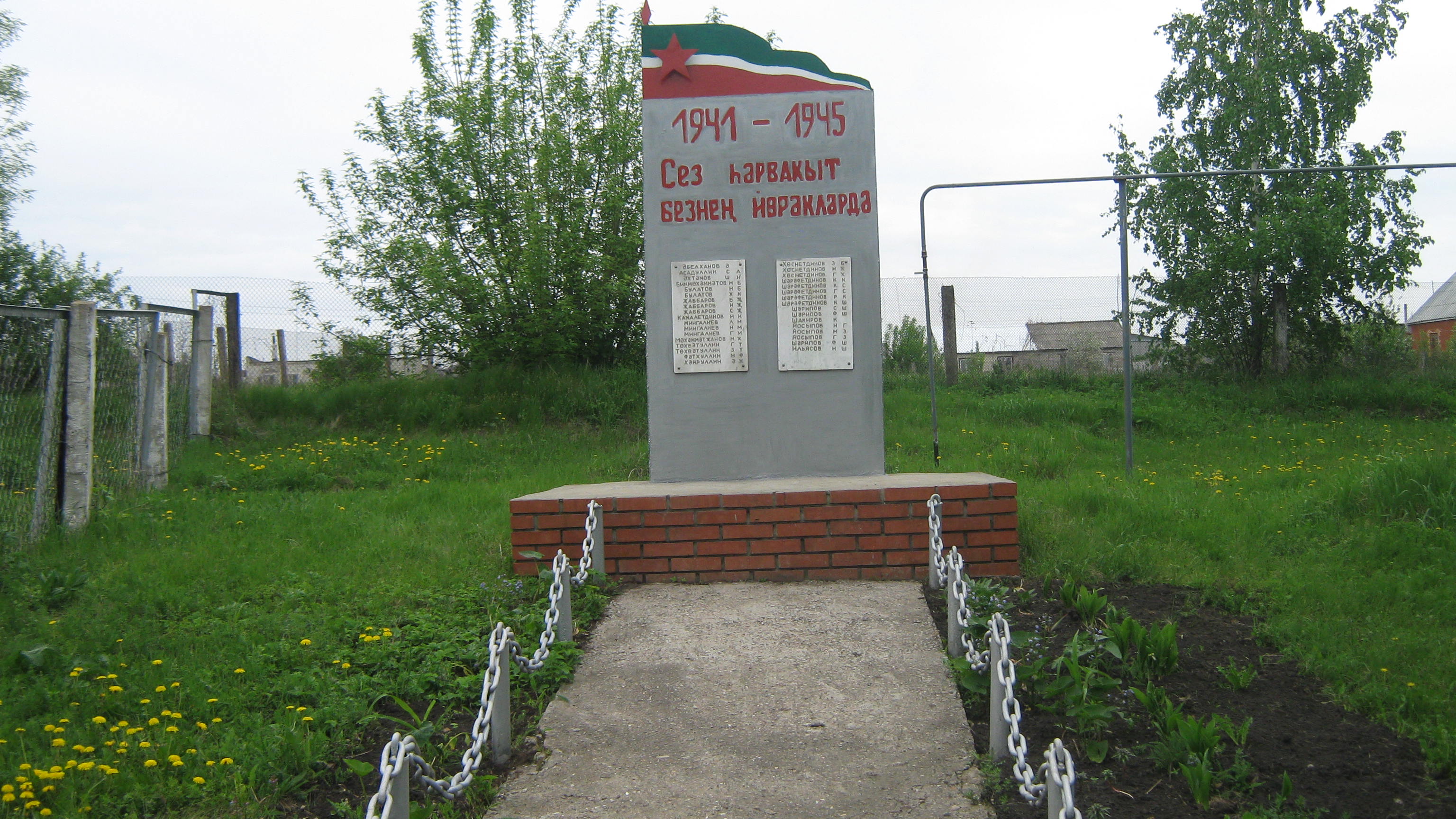МЕМОРИАЛЬНАЯ ПЛИТА УЧАСТНИКАМ ВОВ "СЕЗ ҺӘРВАКЫТ БЕЗНЕҢ ЙӨРӘКЛӘРДӘ" Д.МАЛАЯ БУИНКА, БУИНСКИЙ РАЙОН