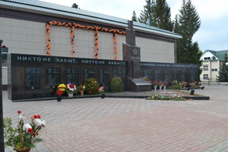 Этот ансамбль был открыт 9 мая 2011 года в день празднования 66-й годовщины Великой Победы. В центральной части ансамбля указано, что из района на фронт ушли более 16 тысяч человек и более 10 тысяч остались лежать на полях сражений. На мемориальных плитах высечены наименования всех населенных пунктов, существовавших на тот период, и под каждым из них указана численность ушедших на фронт и не вернувшихся.
