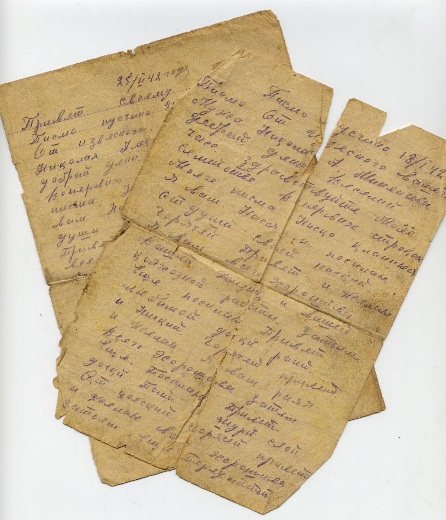 Пожелтевшие, затертые до дыр тетрадные листочки. Им 72 года. Отправлено 18 января 1942 года. Бережно хранит их дочь солдата. Всякий раз 9 мая, разглаживает морщинистой рукой, подносит к губам. Ведь это письма ее папы, не вернувшегося с той далекой войны.