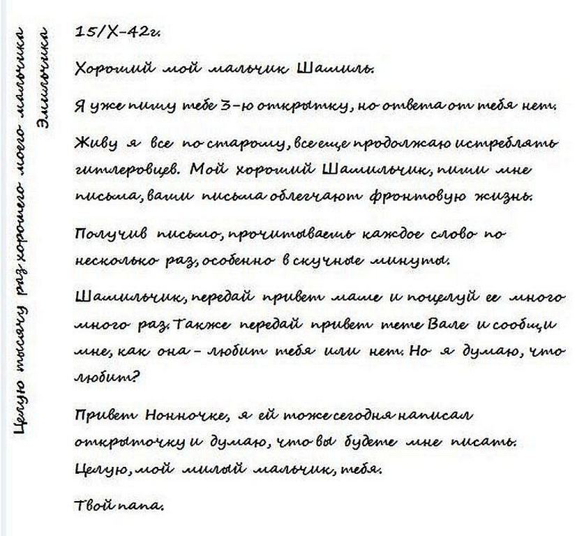 По воспоминаниям родных, последняя весточка (открытка) от Шакира была получена 15.10.42 г. с адреса: Действующая армия, П.П.С.250, 75 гвардейский С.П. (миномётный), 26 гвардейская С.Д., рота П.Т.Ф., часть 121. Его друг Гудзь, видимо, щадя чувства семьи, написал, что Шакир ранен в бок и лежит в госпитале, но вскоре пришла похоронка.