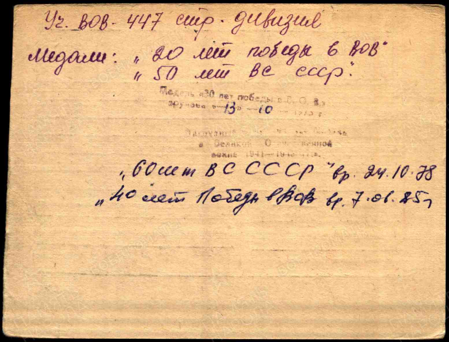 Призван в армию 1941г. Шугуровским РВК. Воинское звание: рядовой. Воевал в составе 447 стрелковой дивизии. На фронте с 24.06.1941 по 08.1941 года. Попал в плен в лагерь Бухенвальд, его лагерный номер: 46581.