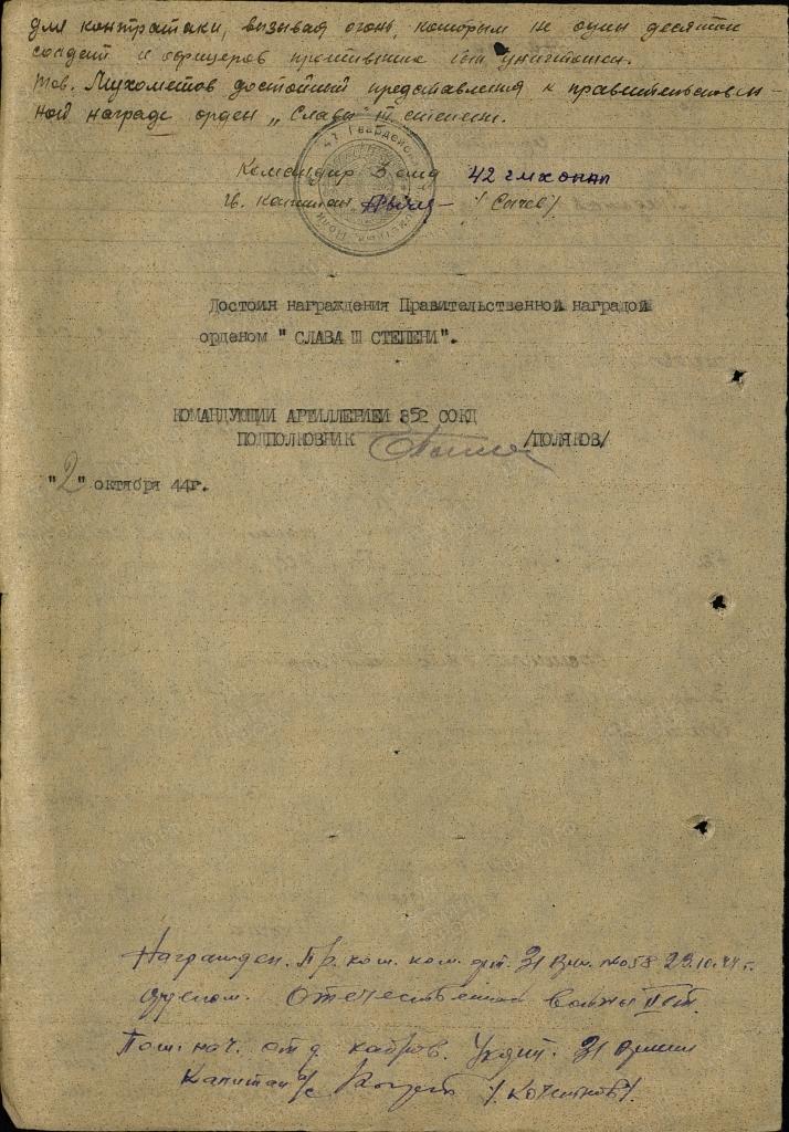 Награжден 23.10.1944 г. орденом Отечественной войны второй степени.