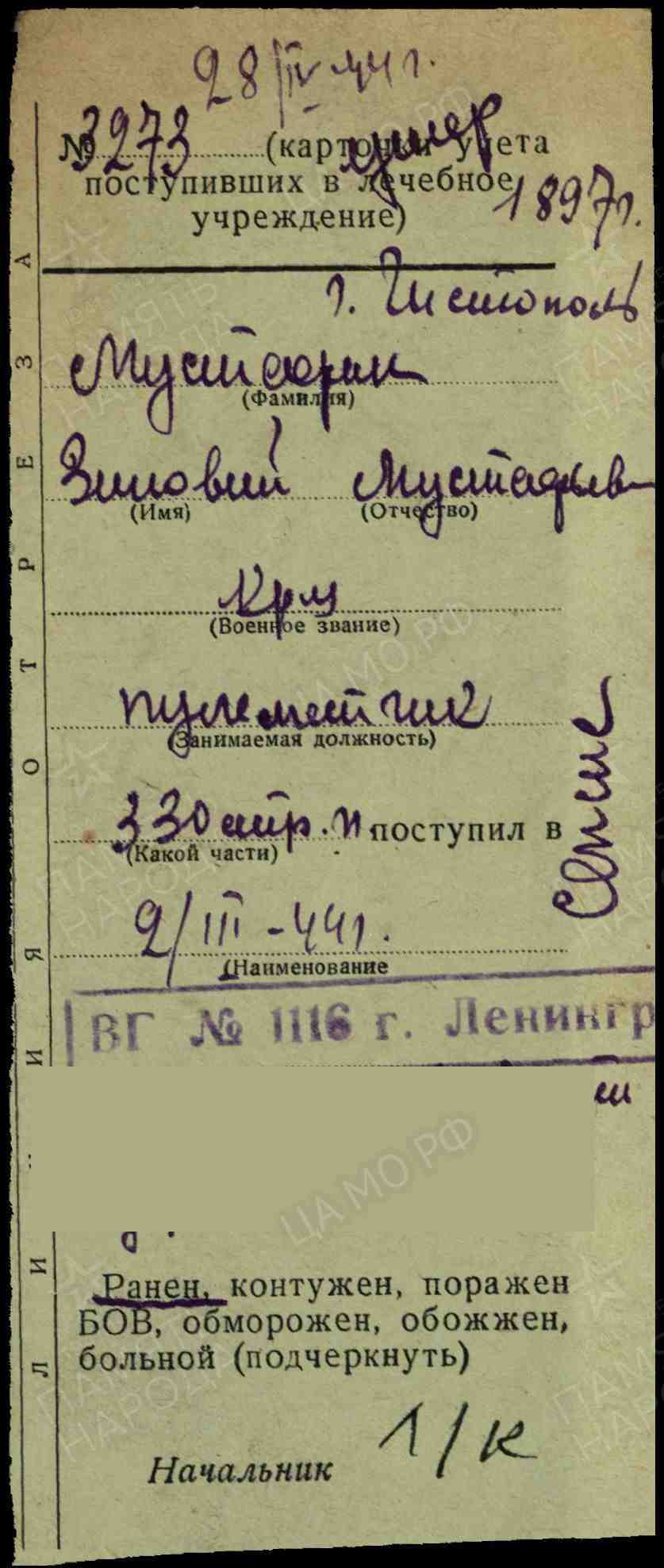 Сайт «Память народа»// https://pamyat-naroda.ru/heroes/memorial-chelovek_donesenie55086065