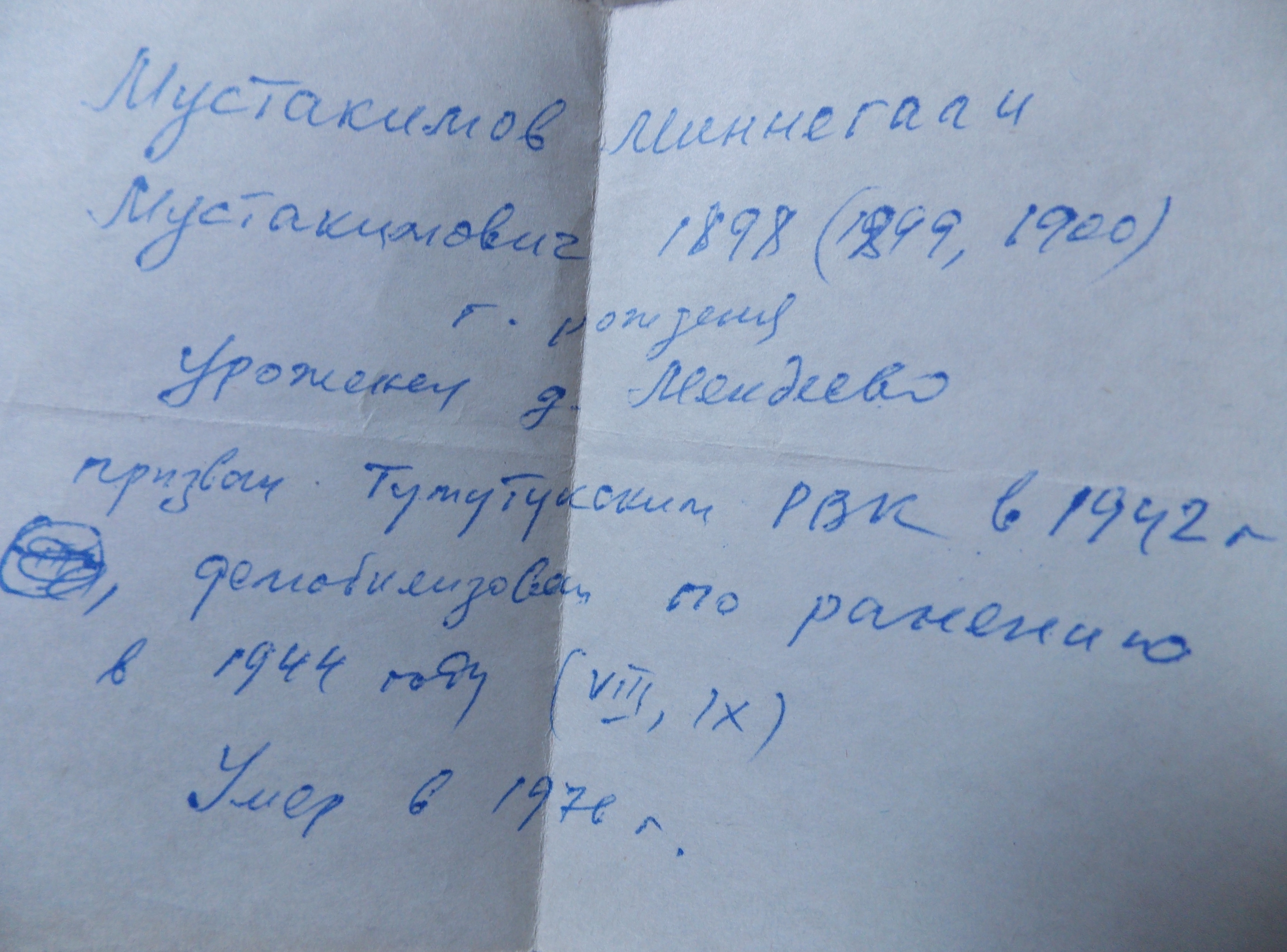 В июне 1944 года, после ранения, вернулся с фронта отец. В сентябре призвали в армию и Мингалима. Пройдя четырехмесячные ускоренные курсы и получив специальность на Багай-Барановской авиабазе в Саратовской области, он прибыл в воинскую часть, где исполнял обязанности мастера, отвечая за укомплектованность самолетов пушками, пулеметами и боеприпасами.
