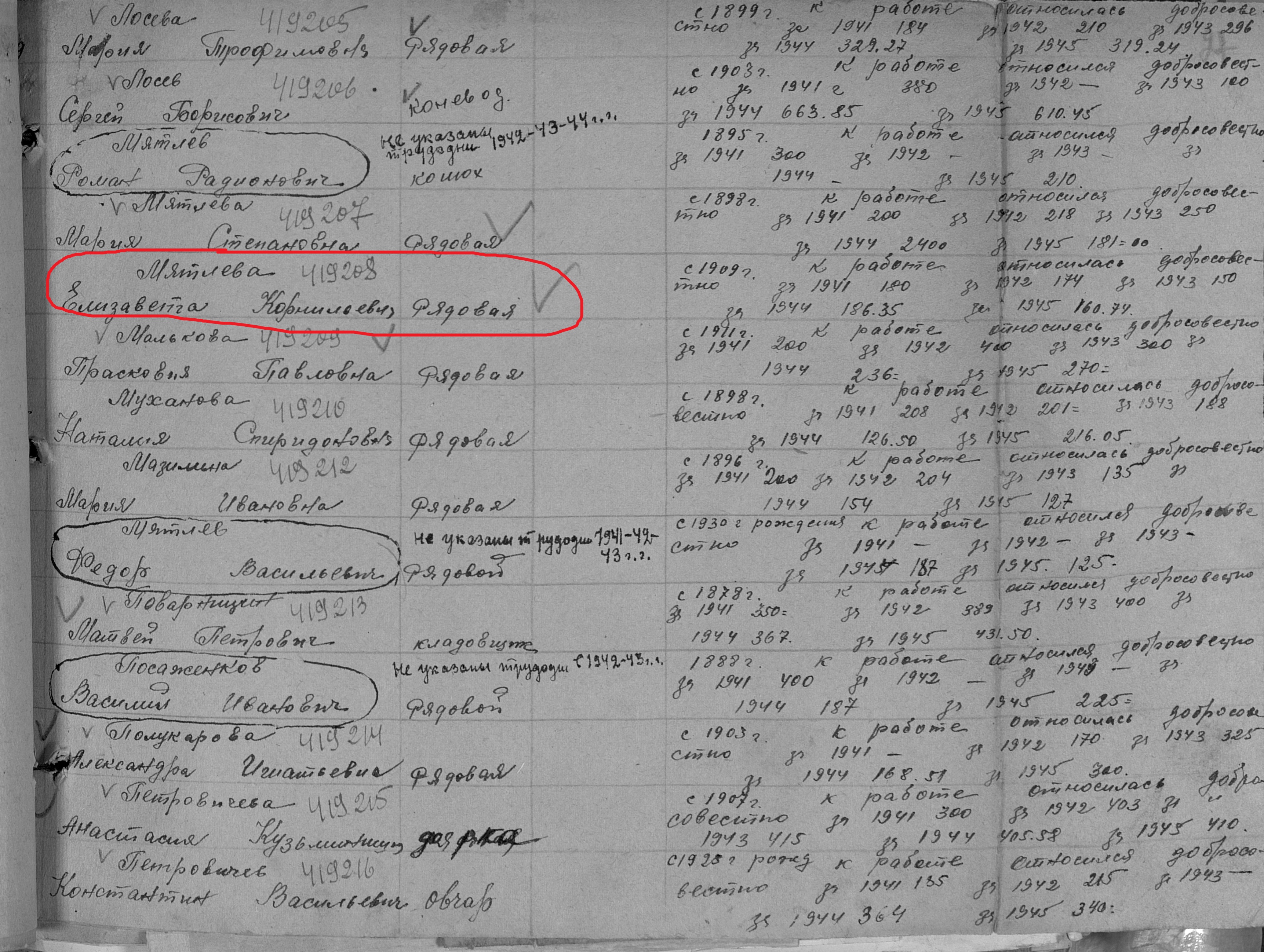 Мятлева Елизавета Корниловна родилась в 1909 году в с.Новошешминск Казанской губернии Чистопольского уезда Новошешминской волости. В годы Великой Отечественной войны работала в колхозе им.Молотова рядовой колхозницей. Награждена медалью "За доблестный труд в Великой Отечественной войне 1941–1945 гг." (Акт от 28 апреля 1947 г, фонд 3610, опись 2, дело № 325, лист 27, № 419208).