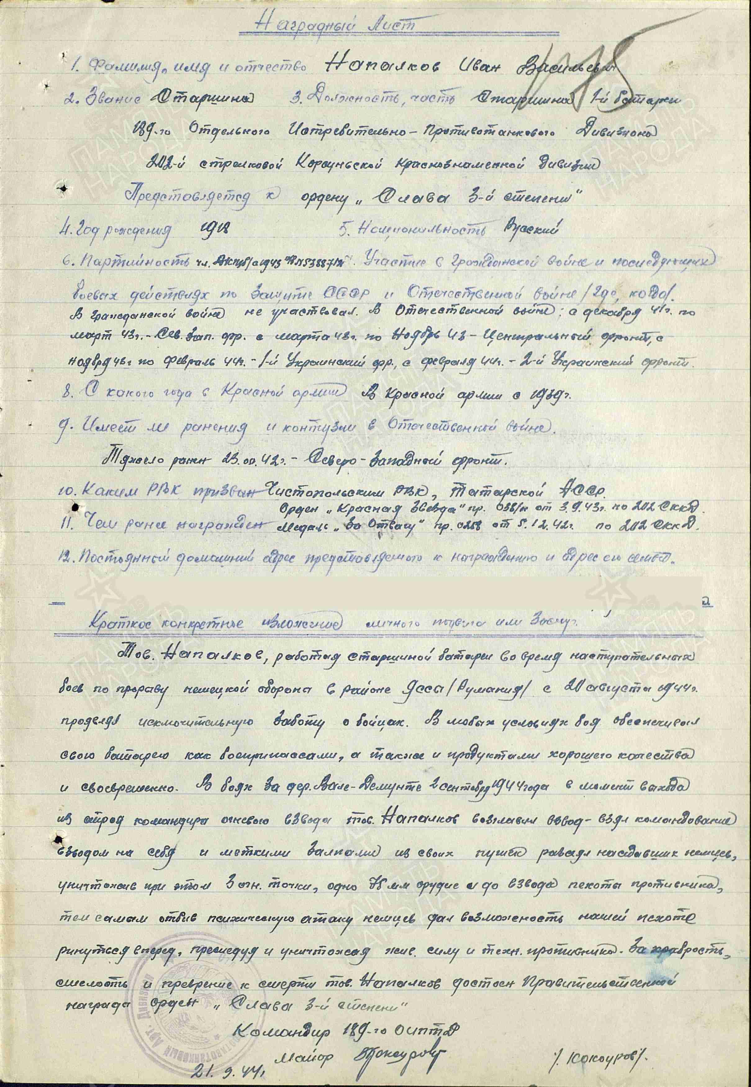 НАПАЛКОВ ИВАН ВАСИЛЬЕВИЧ