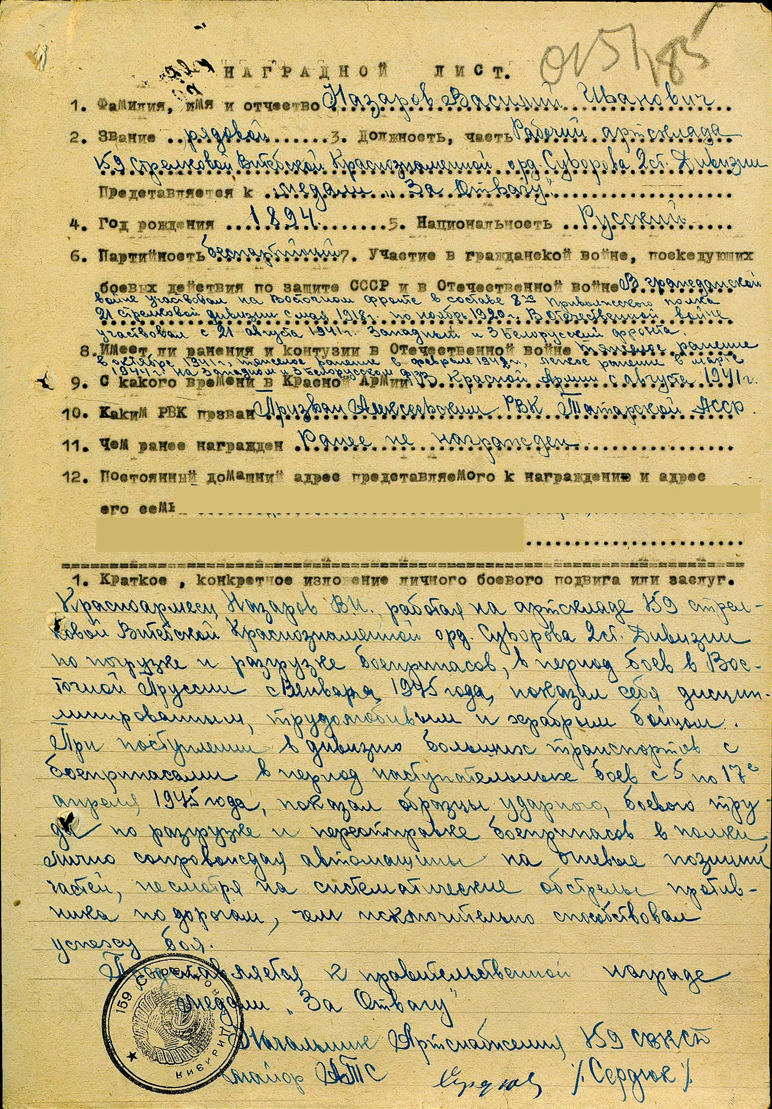 НАЗАРОВ ВАСИЛИЙ ИВАНОВИЧ