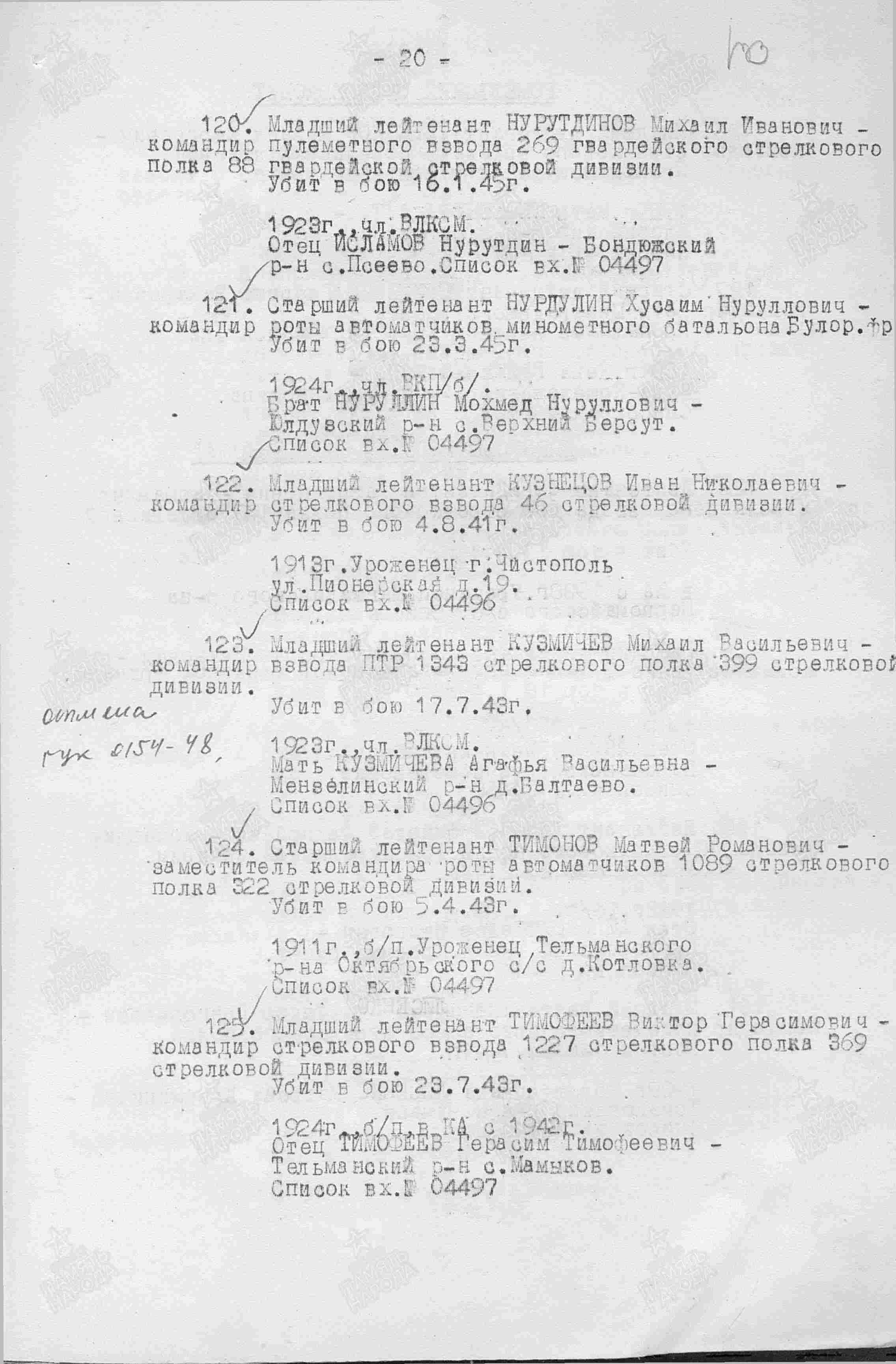 Родился в 1923 г., Татарская АССР, Бондюжский р-н, д. Псеево. Млдший лейтенант, командир пулеметного взвода , 269 гвардейский стрелковый полк 88 гвардейской стрелковой дивизии.