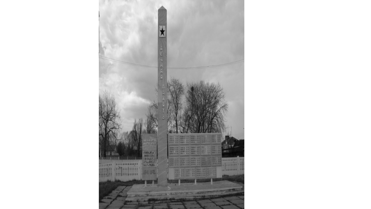 3.ОПИСАНИЕ ОБЪЕКТА: СТЕЛЛА-6м, МЕМОРИАЛЬНАЯ ДОСКА 7м на 2м с фамилиями и инициалами погибших участников Великой Отечественной войны.