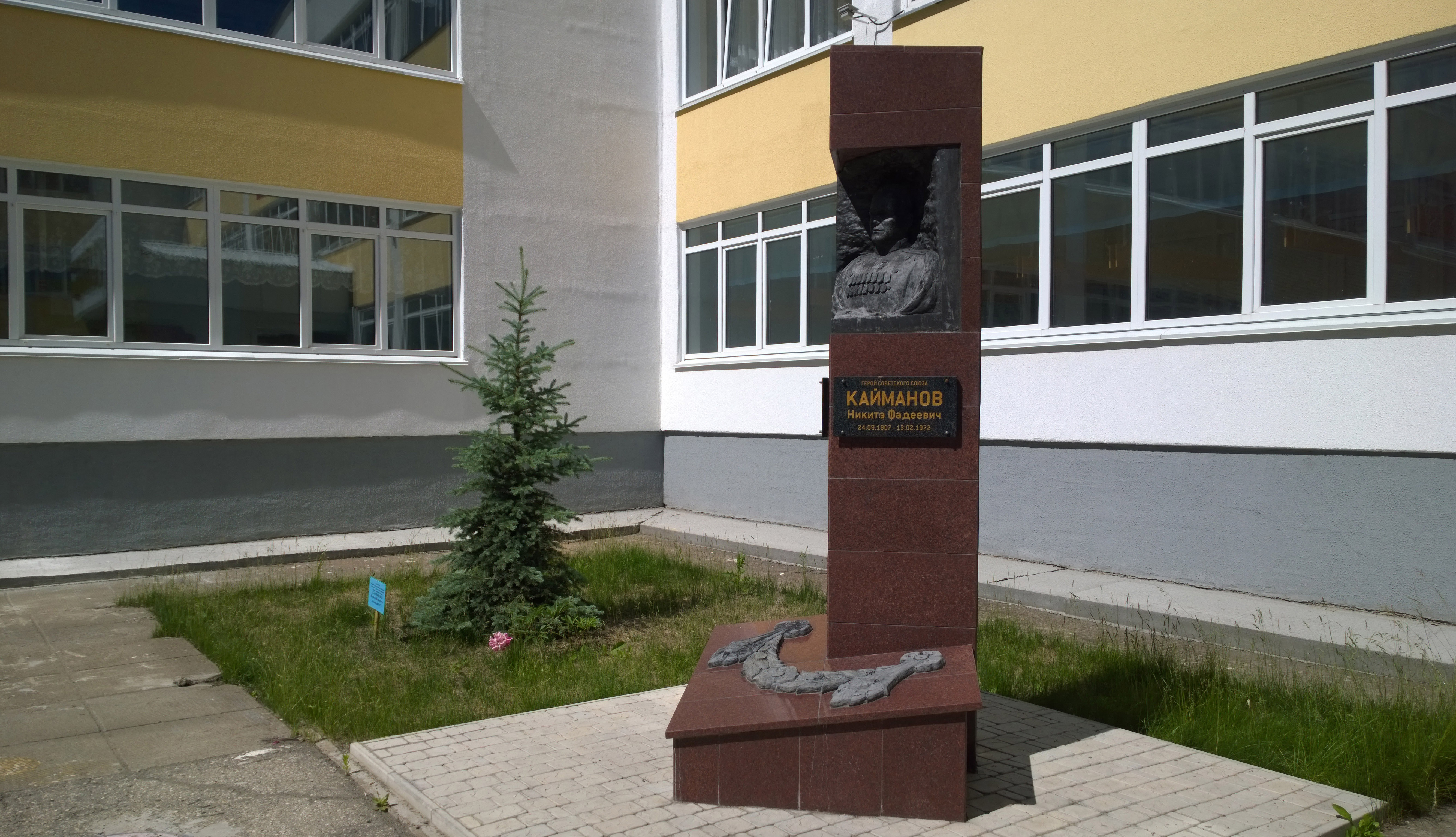Обелиск Герою Советского Союза Никите Фадеевичу Кайманову был торжественно открыт 25 сентября 2017 г. перед Кадетской школой №47 им. Н.Ф.Кайманова.