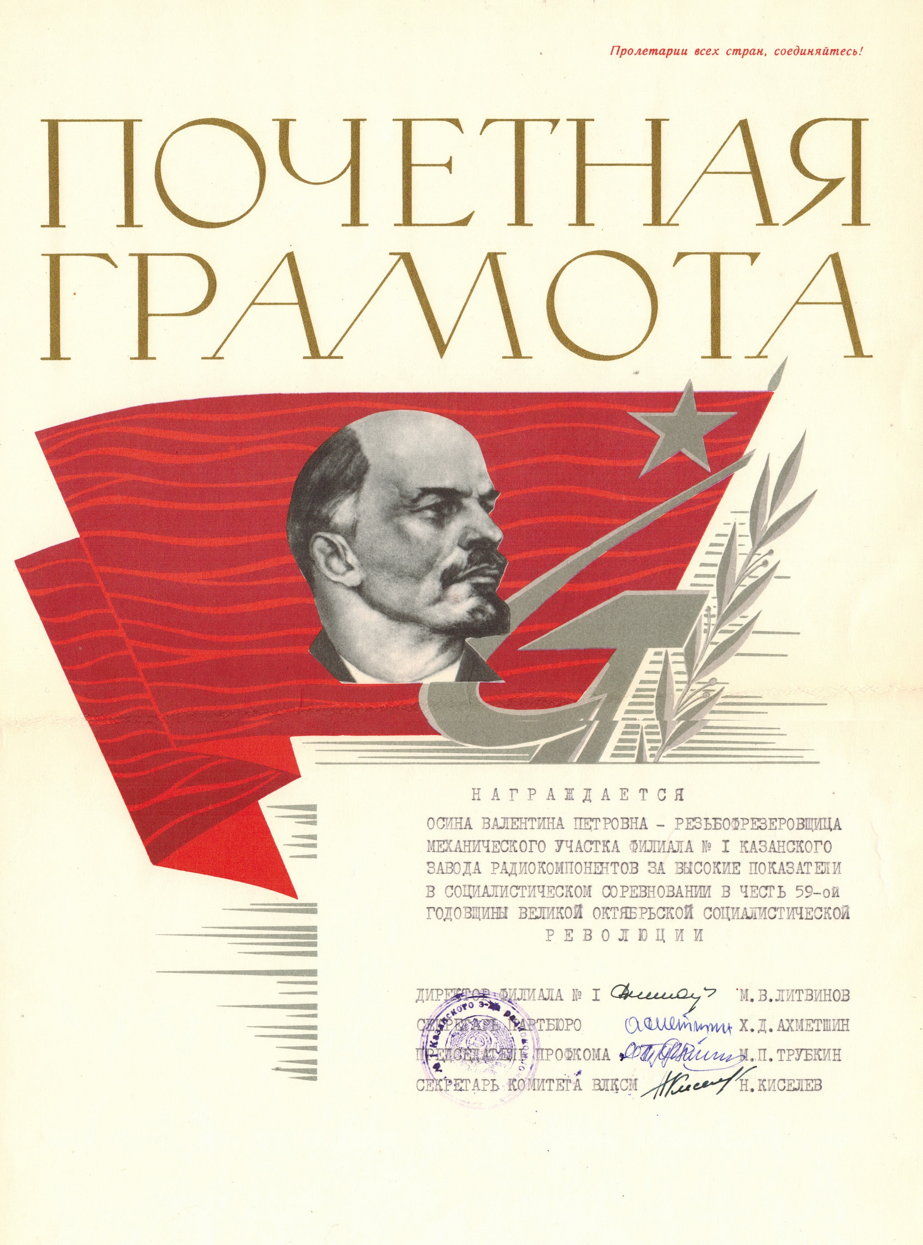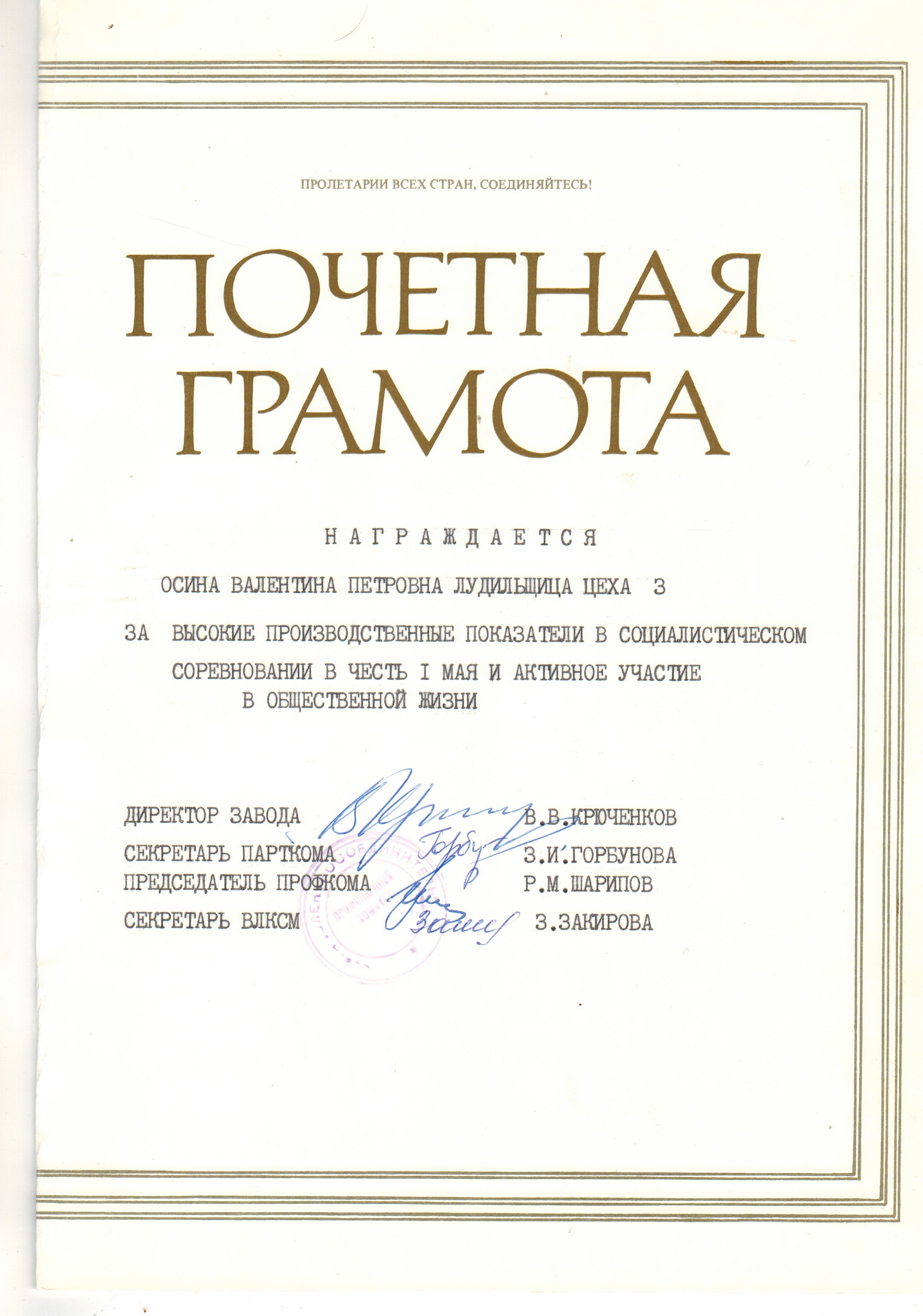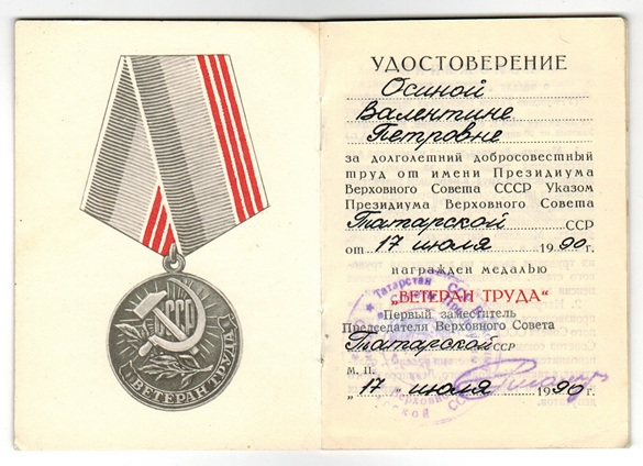 Осина (в девичестве Кривова) Валентина Петровна родилась 02 февраля 1935 г.р. в крестьянской семье в с. Новое поле Ютазинского района Татарской АССР.