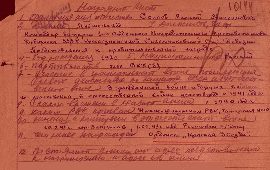 ОСИПОВ АЛЕКСЕЙ МАКСИМОВИЧ
