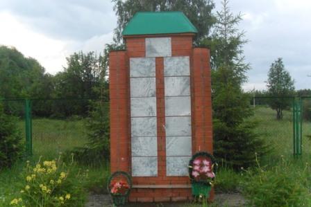 КРАТКОЕ ОПИСАНИЕ: Кирпичный памятник в форме прямоугольника, мраморные таблички с фамилиями погибших. Размер: 1,6х3м