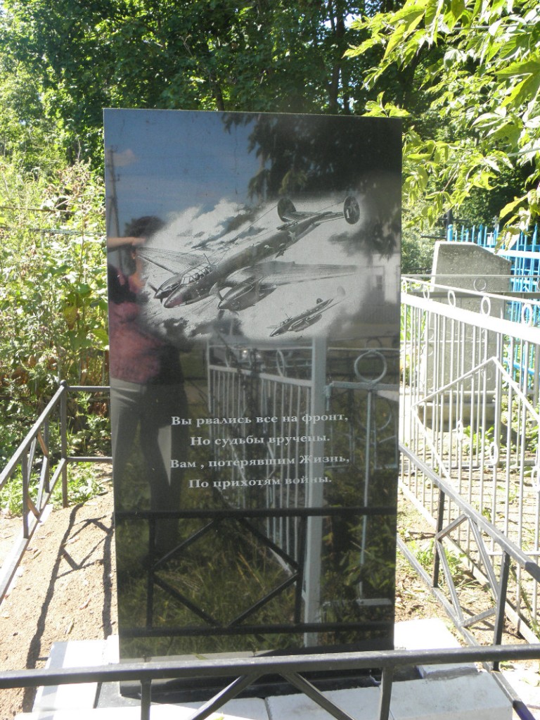 Памятник летчикам самолета Пе-2, погибшим в ходе учебно-тренировочного полета 19 января 1943г. был торжественно открыт 21 августа 2011 года на центральном кладбище города Чистополь.Памятник представляет собой прямоугольную мраморную стелу, на одной стороне которой размещена информация о летчиках, а на другой стороне: фото самолета Пе-2 и надпись: « Вы рвались все на фронт, но судьбы вручены Вам, потерявшим Жизнь по прихоти войны». На торжественное захоронение собрались представители учебных заведений, предприятий и учреждений, ветеранских и молодёжных организаций.