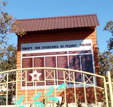 Датировка объекта 1970 год. Стела установлена на постаменте. На стеле прикреплена табличка со словами "Вечная память павшим", на обратной стороне ФИО погибших односельчан. Имебтся зеленые насаждения, металлическое ограждение.