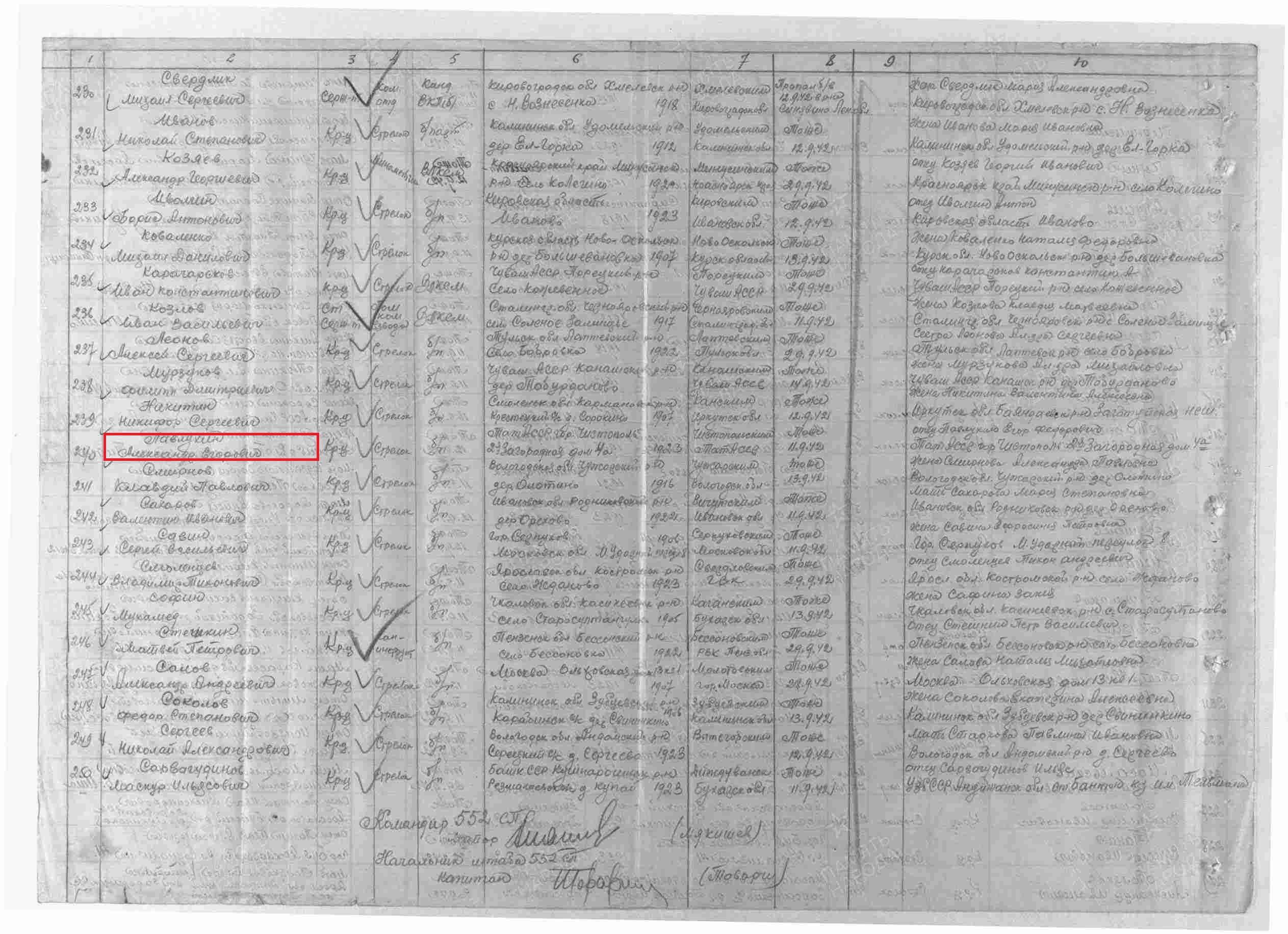 ПАВЛЮХИН АЛЕКСАНДР ЕГОРОВИЧ родился в 1923 году в с.Слобода Черемуховая Чистопольского кантона ТАССР. (ныне с.Слобода Черемуховая Новошешминского района РТ). Мобилизован Чистопольским РВК,мл.л-т 343 пхп.,552 сп,191 сд. Пропал без вести 02.09.42.г. Область выбытия: Ленинградская обл., Кировский р-н,п.Синявино.