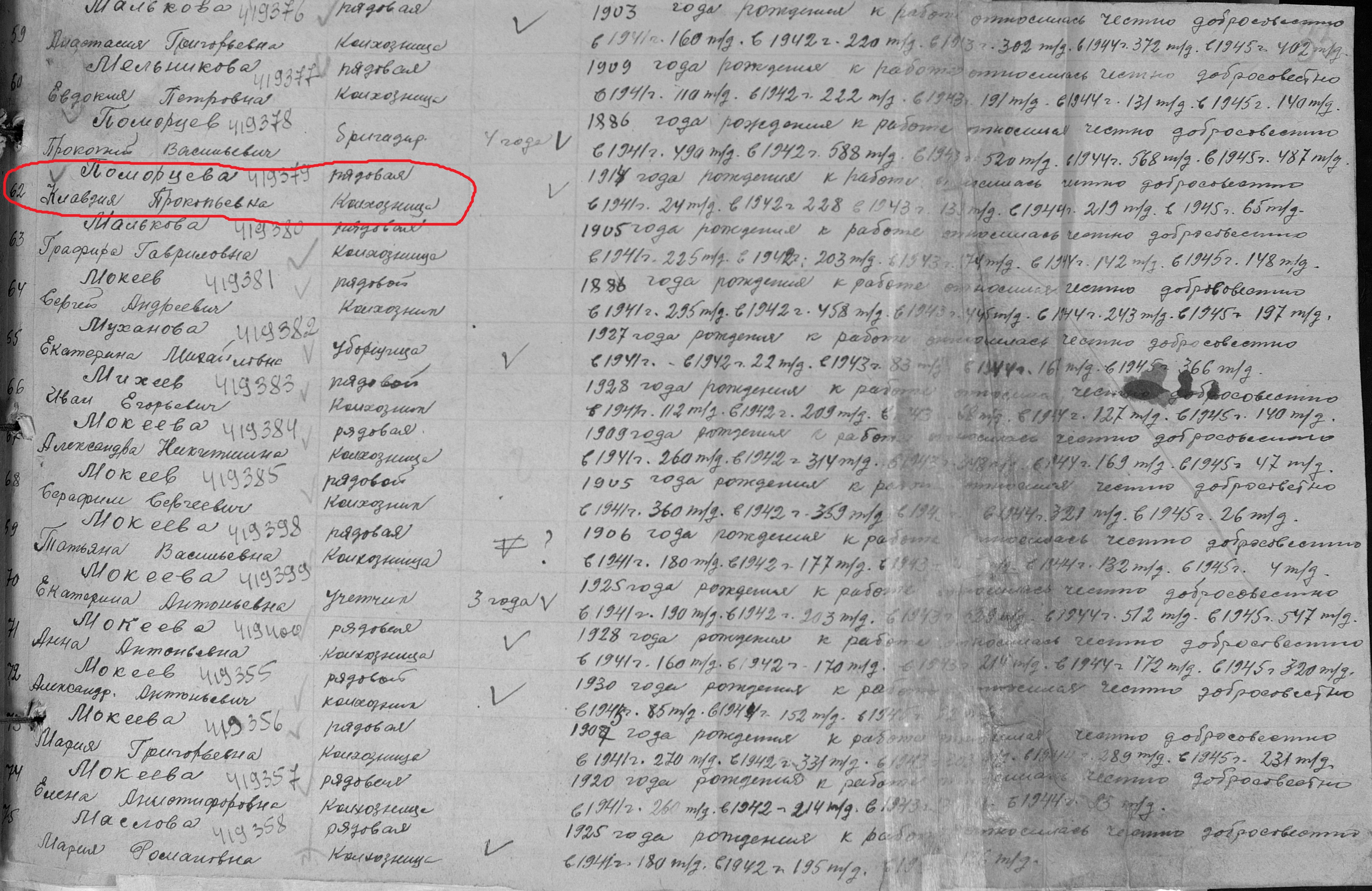 Поморцева Клавдия Прокопьевна родилась в 1914 году. Место жительства: с.Ново-Шешминск Ново-Шешминский район ТАССР. В годы Великой Отечественной войны работала в колхозе «Красный Октябрь» рядовой колхозницей. Награждена медалью "За доблестный труд в Великой Отечественной войне 1941–1945 гг." (Акт от 28 апреля 1947 г, фонд 3610, опись 2, дело № 325, лист 33, № 419379).