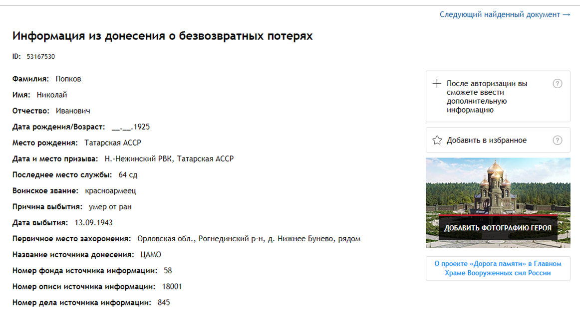 ПОПКОВ НИКОЛАЙ ИВАНОВИЧ