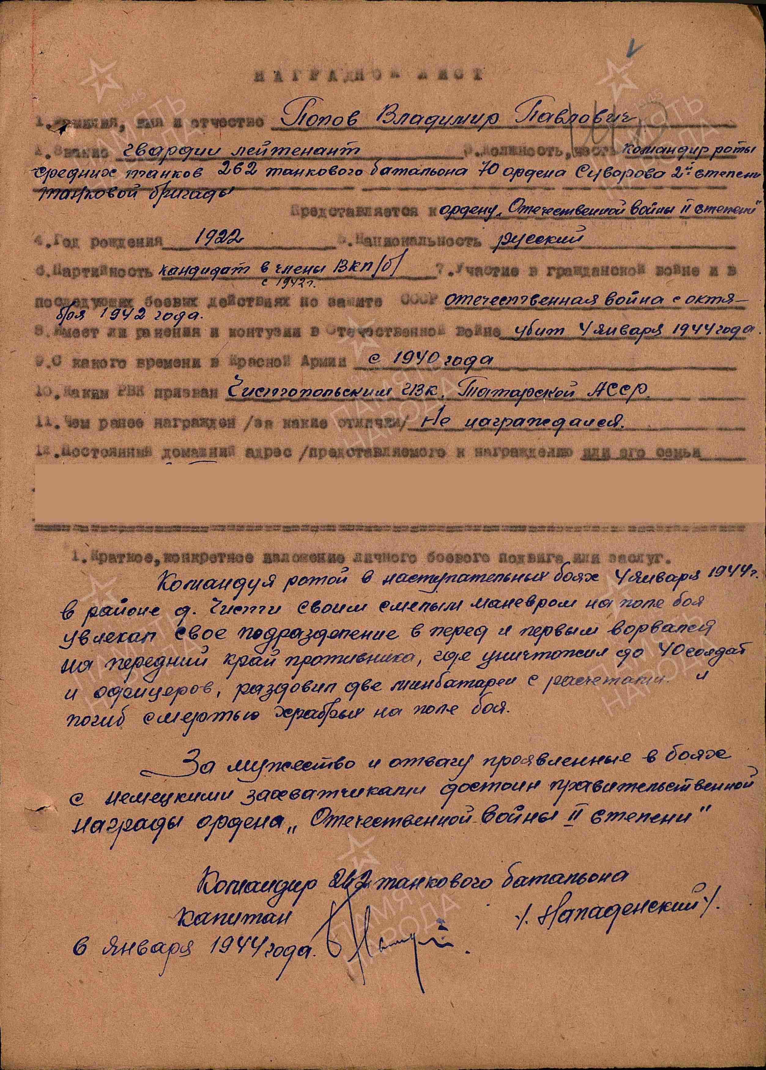 ПОПОВ ВЛАДИМИР ПАВЛОВИЧ